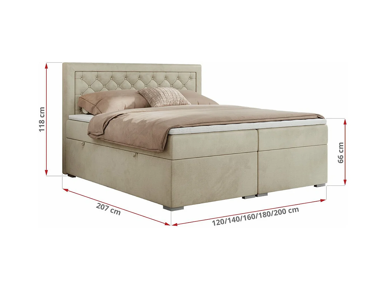 Boxspringbett JASIR - mit gestepptem Kopfteil, Doppelbett für Schlafzimmer, Multipocket-Matratze, Stauraum - 180x200 cm - H3 - Beige Velvet
