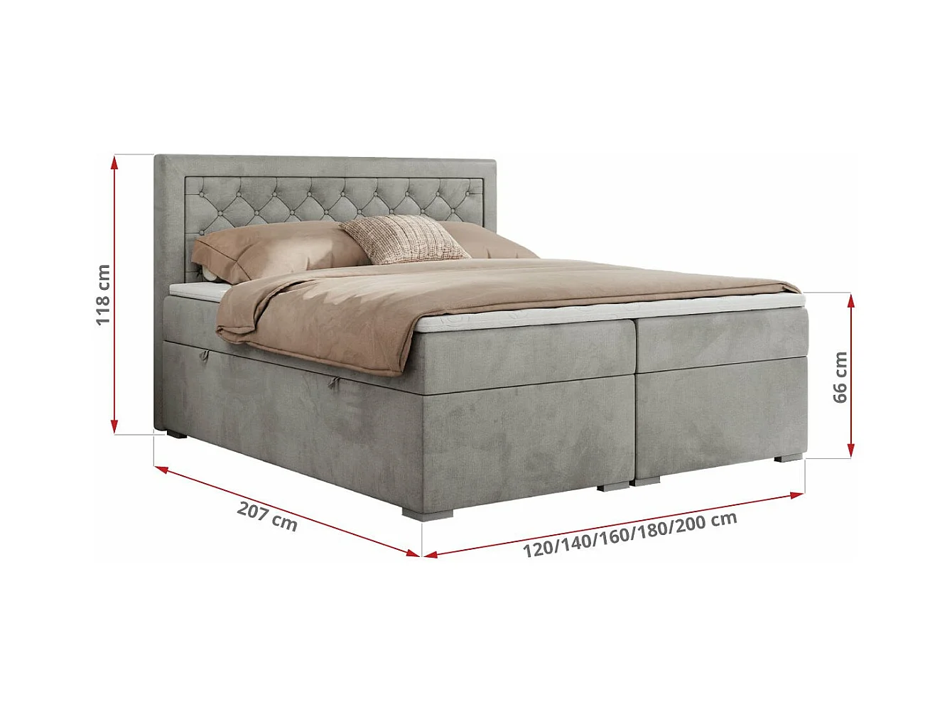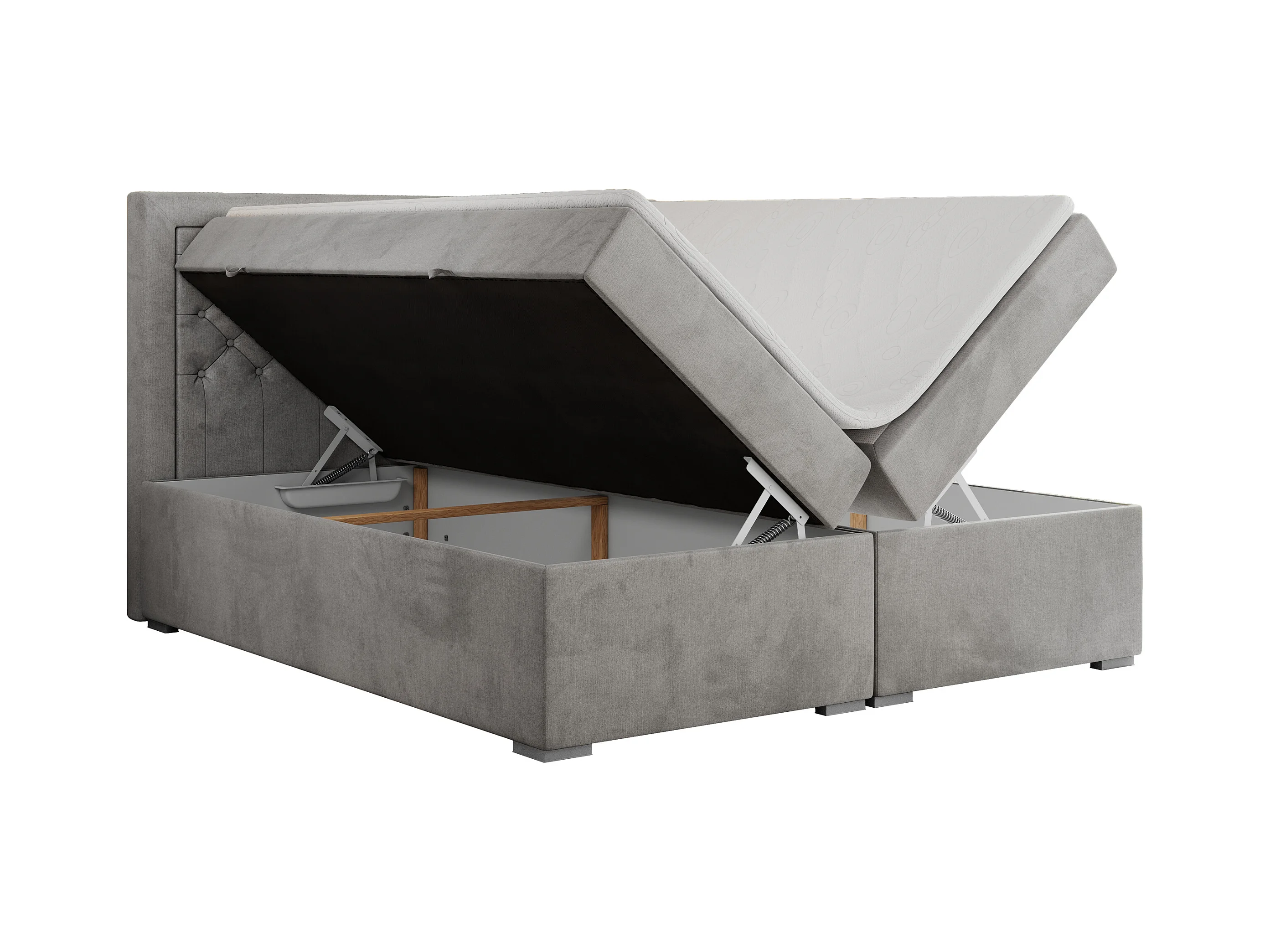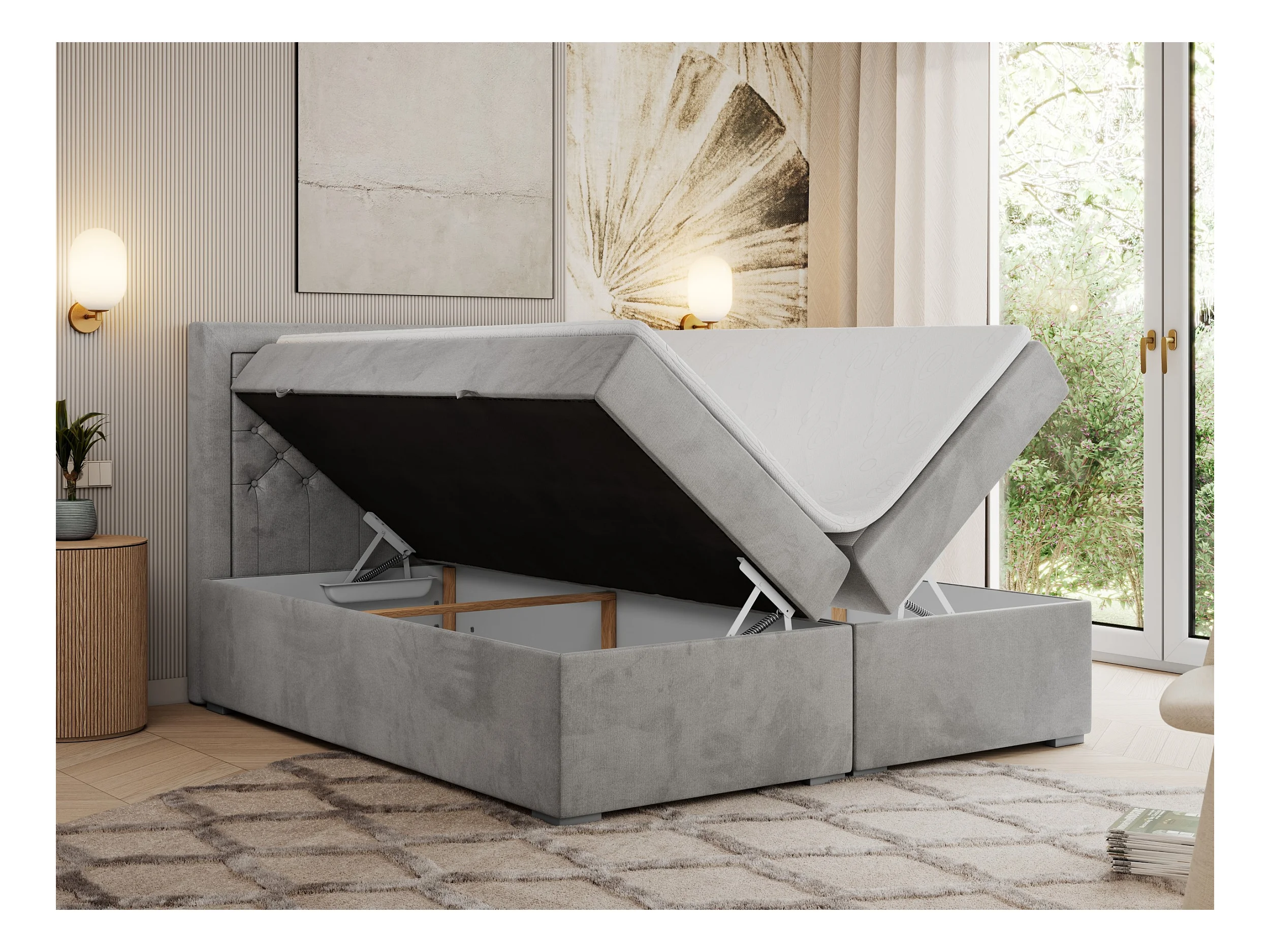 Boxspringbett JASIR - mit gestepptem Kopfteil, Doppelbett für Schlafzimmer, Multipocket-Matratze, Stauraum - 180x200 cm - H3 - Hellgrau Velvet