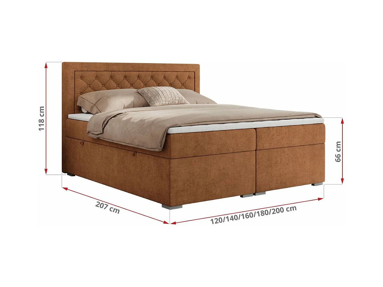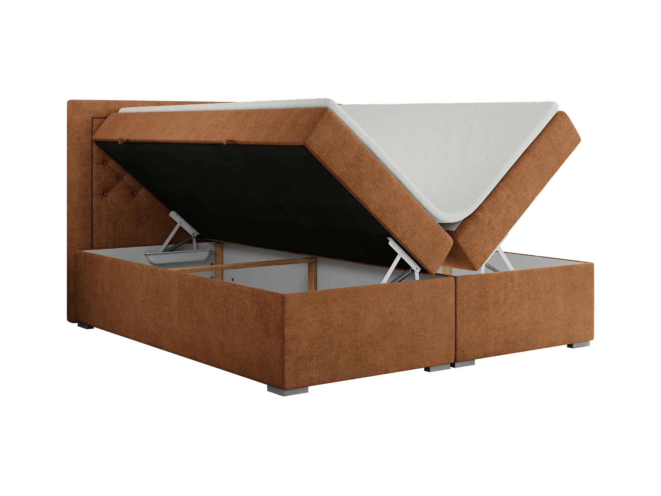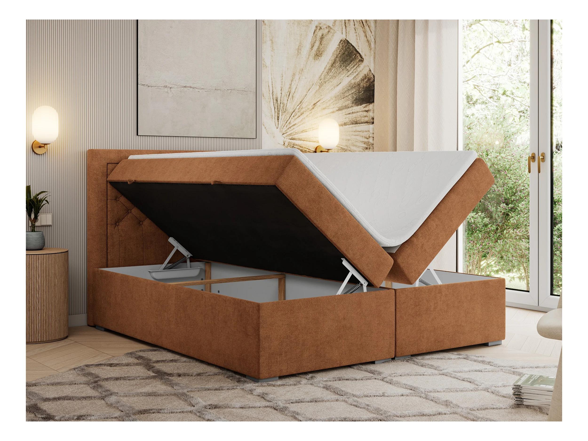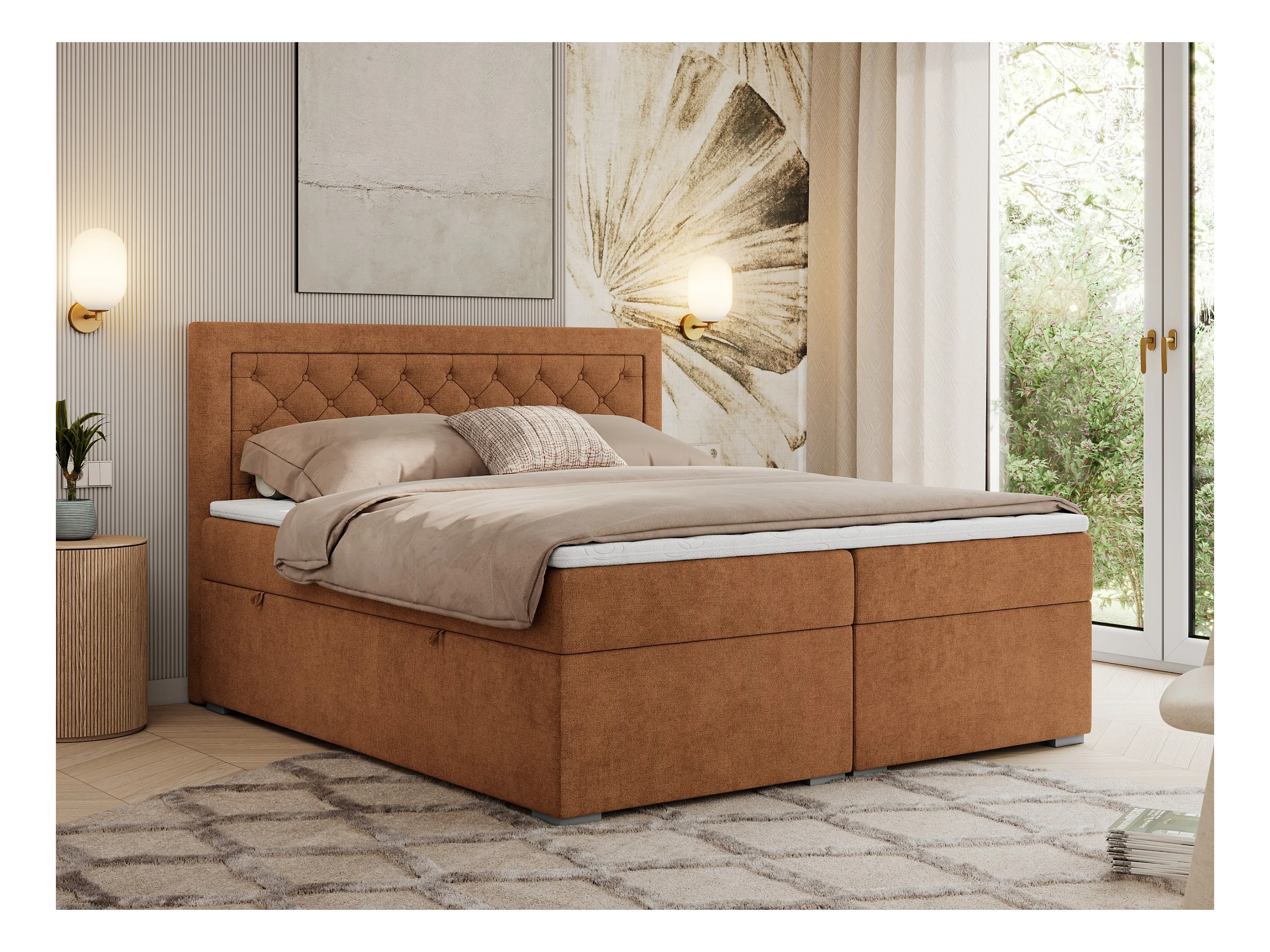 Boxspringbett JASIR - mit gestepptem Kopfteil, Doppelbett für Schlafzimmer, Multipocket-Matratze, Stauraum - 180x200 cm - H3 - Orange Strukture