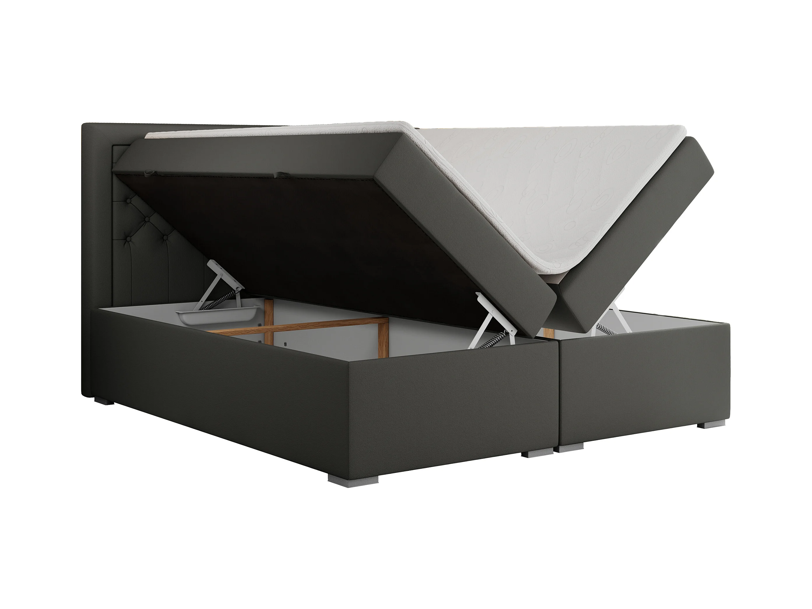 Boxspringbett JASIR - mit gestepptem Kopfteil, Doppelbett für Schlafzimmer, Multipocket-Matratze, Stauraum - 200x200 cm - H3 - Dunkelgrau Kunstleder