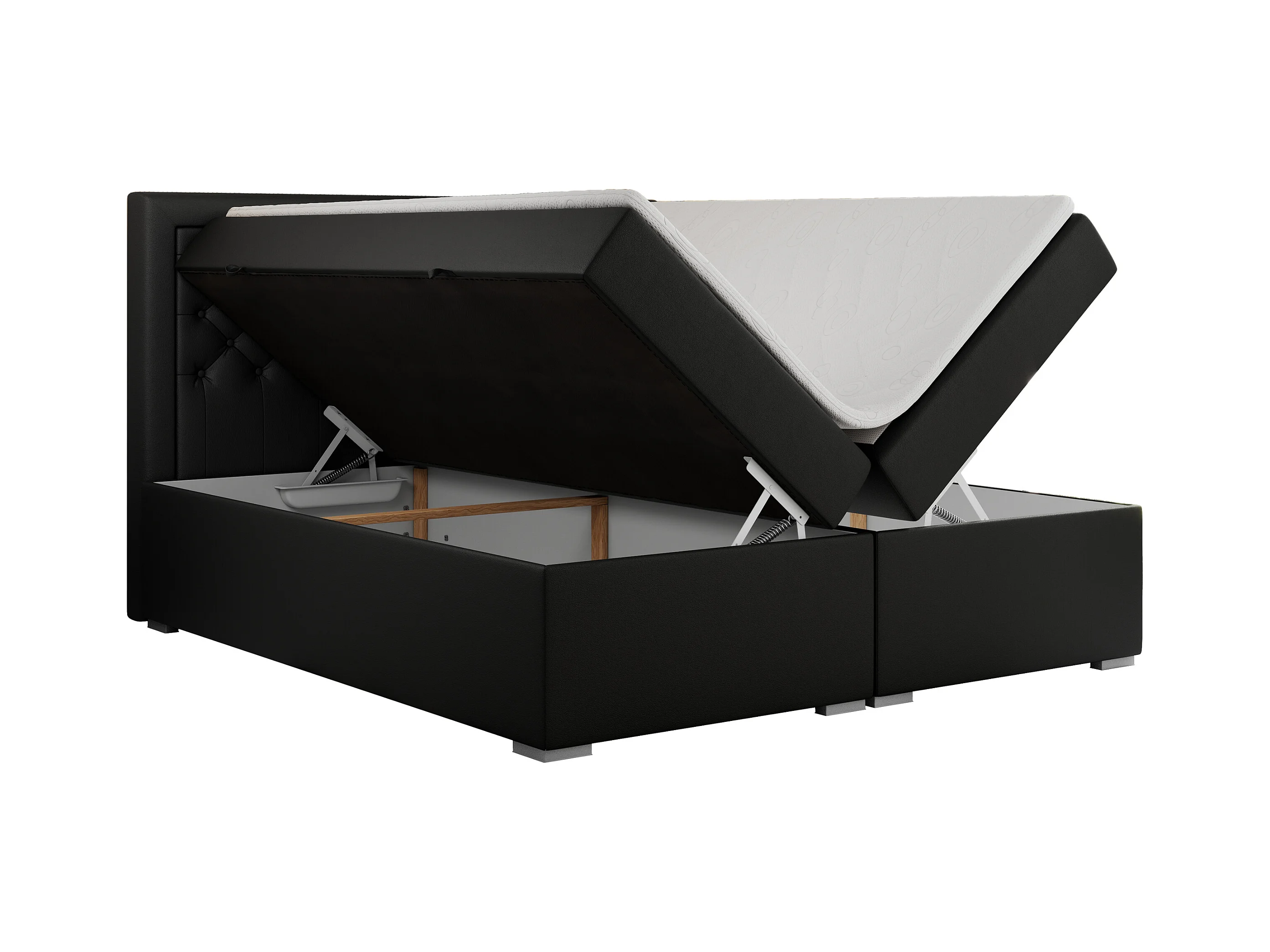 Boxspringbett JASIR - mit gestepptem Kopfteil, Doppelbett für Schlafzimmer, Multipocket-Matratze, Stauraum - 200x200 cm - H3 - Schwarz Kunstleder