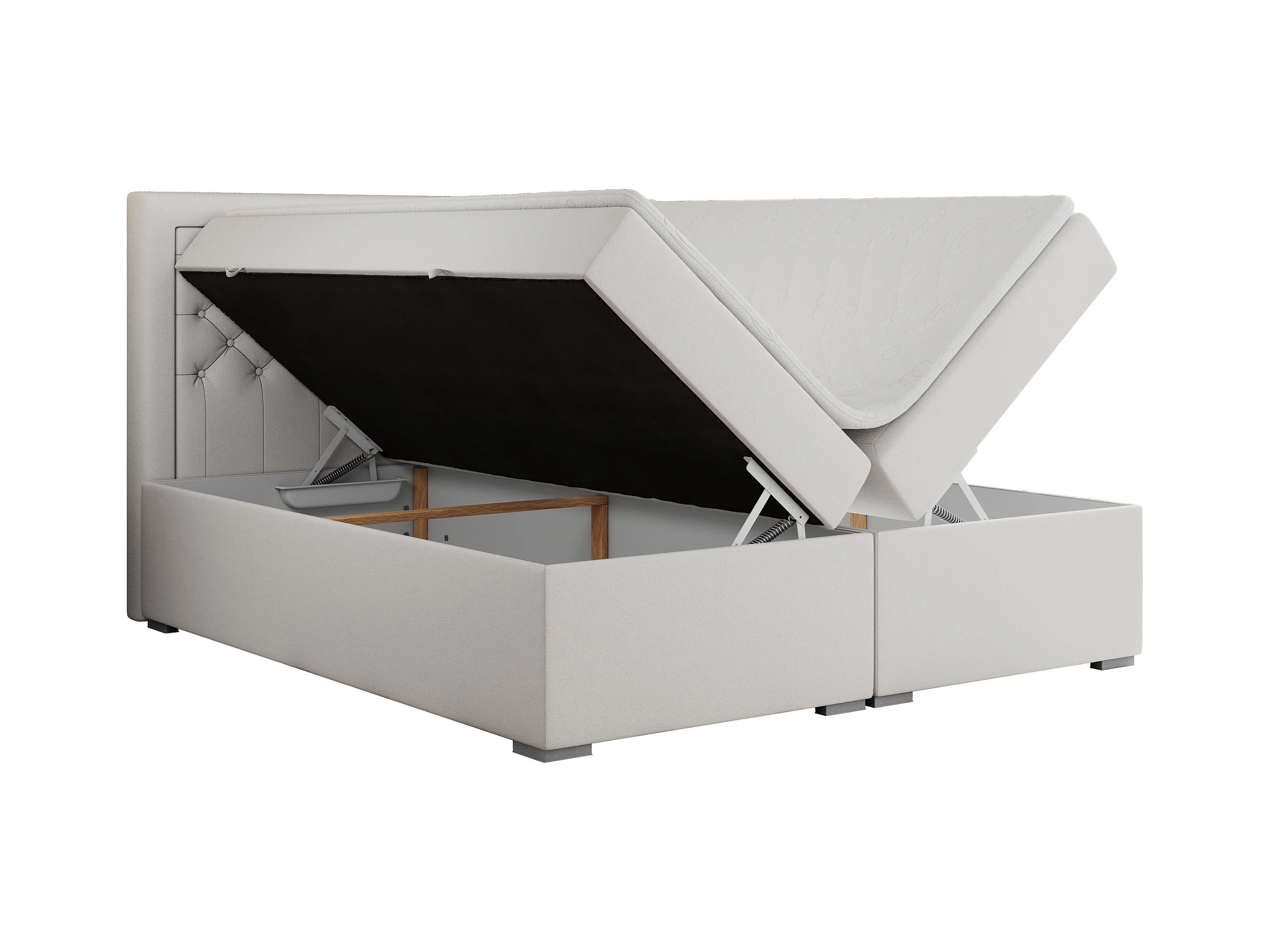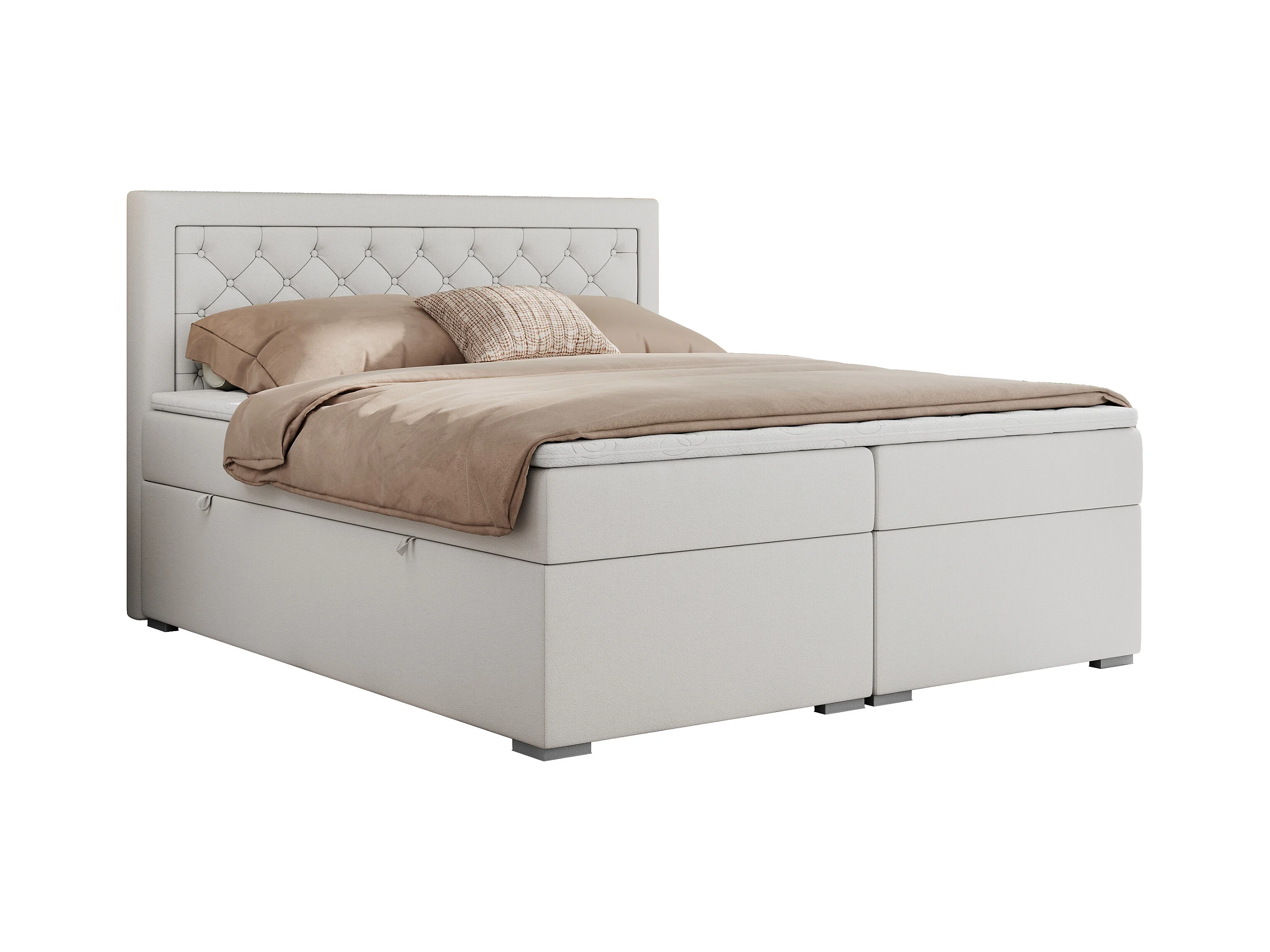 Boxspringbett JASIR - mit gestepptem Kopfteil, Doppelbett für Schlafzimmer, Multipocket-Matratze, Stauraum - 200x200 cm - H3 - Weiß Kunstleder