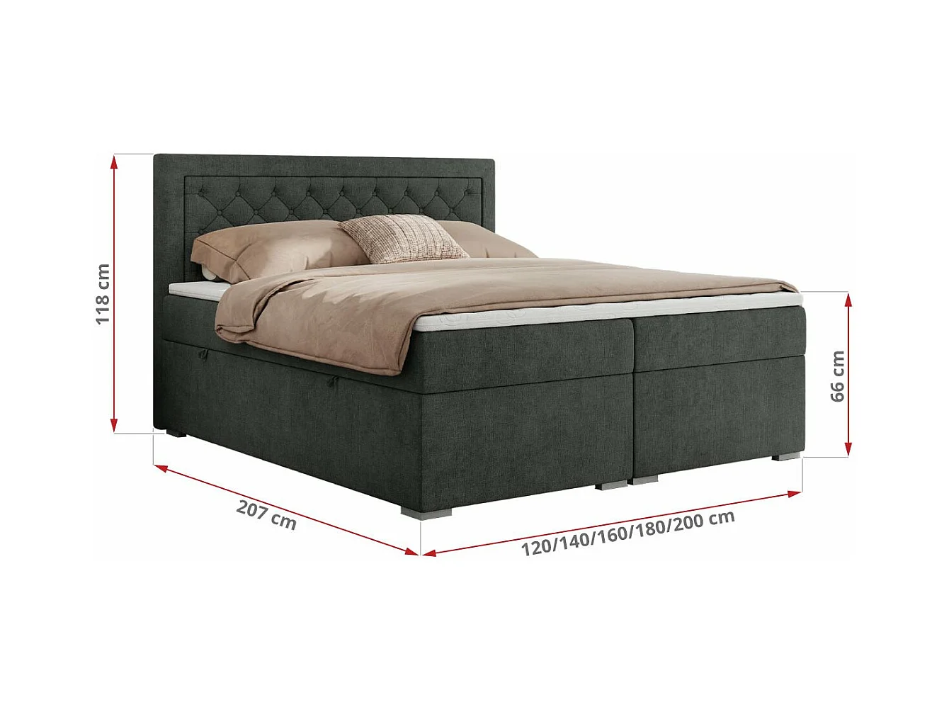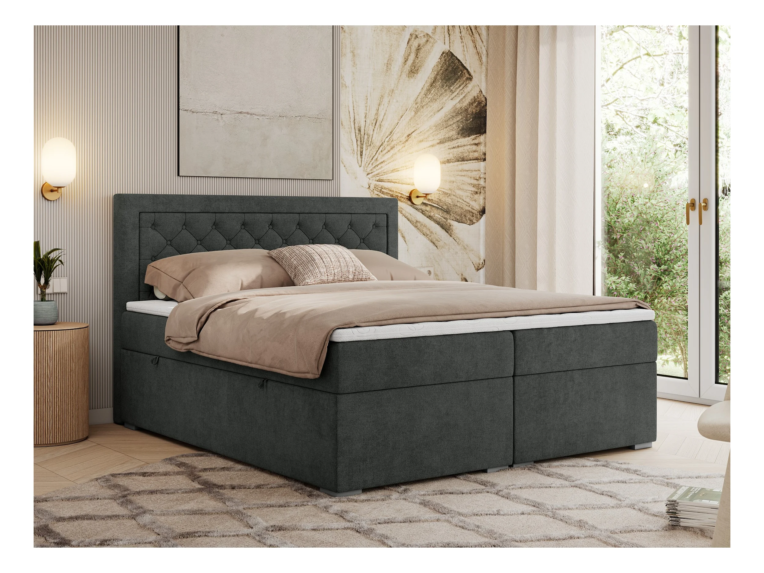 Boxspringbett JASIR - mit gestepptem Kopfteil, Doppelbett für Schlafzimmer, Multipocket-Matratze, Stauraum - 200x200 cm - H4 - Dunkelgrau Strukture