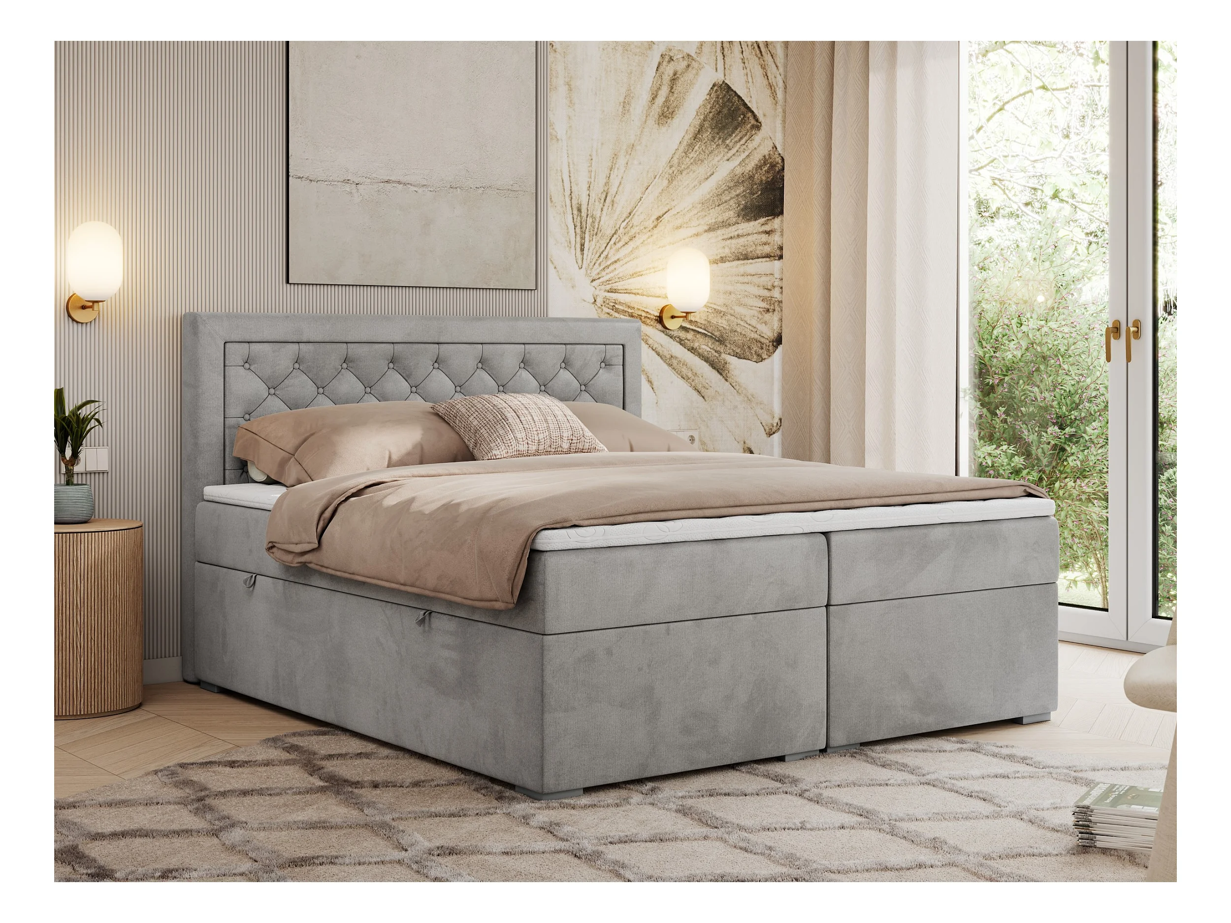 Boxspringbett JASIR - mit gestepptem Kopfteil, Doppelbett für Schlafzimmer, Multipocket-Matratze, Stauraum - 200x200 cm - H4 - Hellgrau Velvet