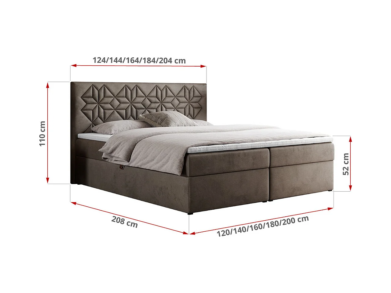 Boxspringbett LEILA - gestepptes Kopfteil, 7 Härtezonen Multipocket-Matratzen, Doppelbett mit Bettkästen - 140x200 cm - H4 - Braun Velvet