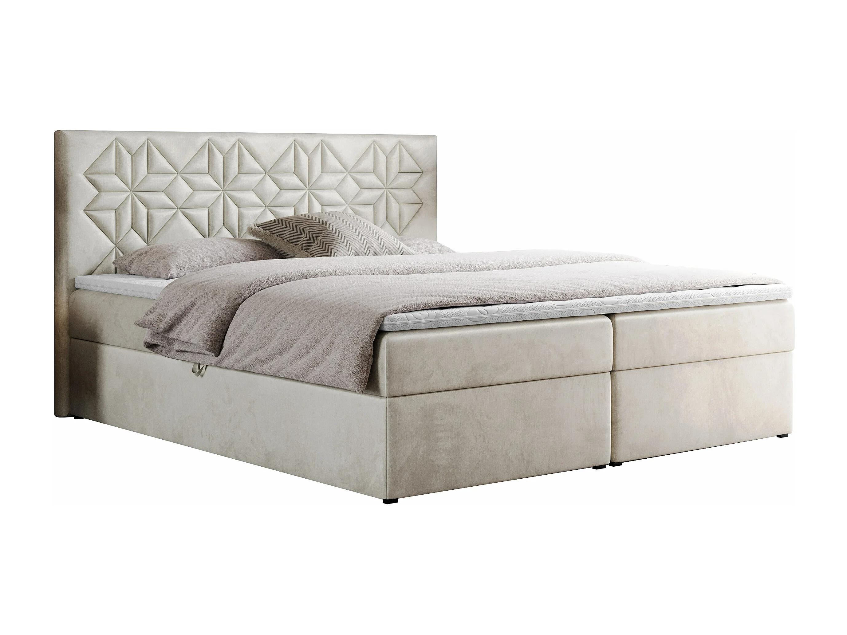Boxspringbett LEILA - gestepptes Kopfteil, 7 Härtezonen Multipocket-Matratzen, Doppelbett mit Bettkästen - 160x200 cm - H3 - Beige Velvet