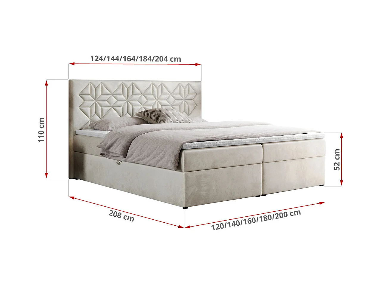 Boxspringbett LEILA - gestepptes Kopfteil, 7 Härtezonen Multipocket-Matratzen, Doppelbett mit Bettkästen - 160x200 cm - H4 - Beige Velvet