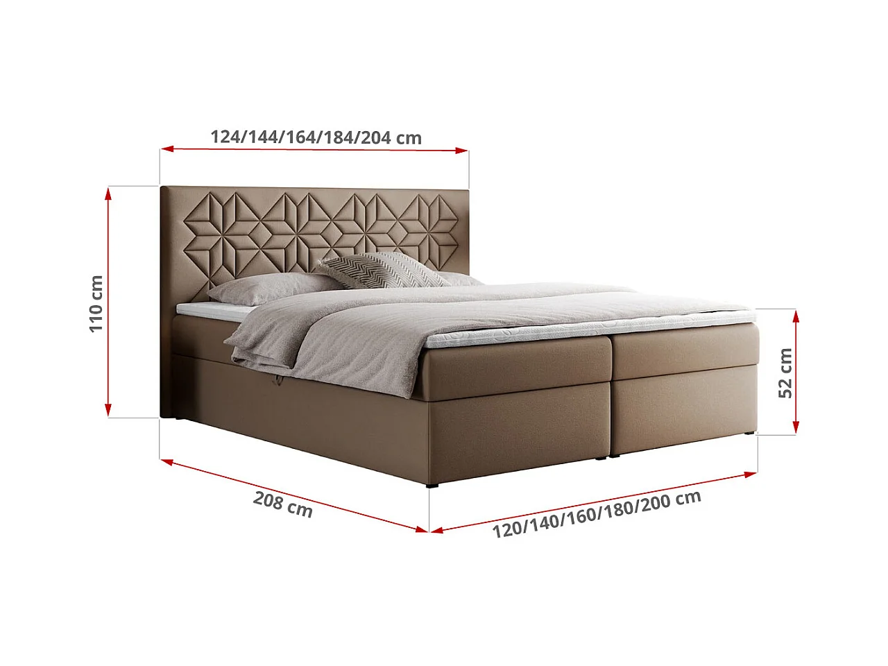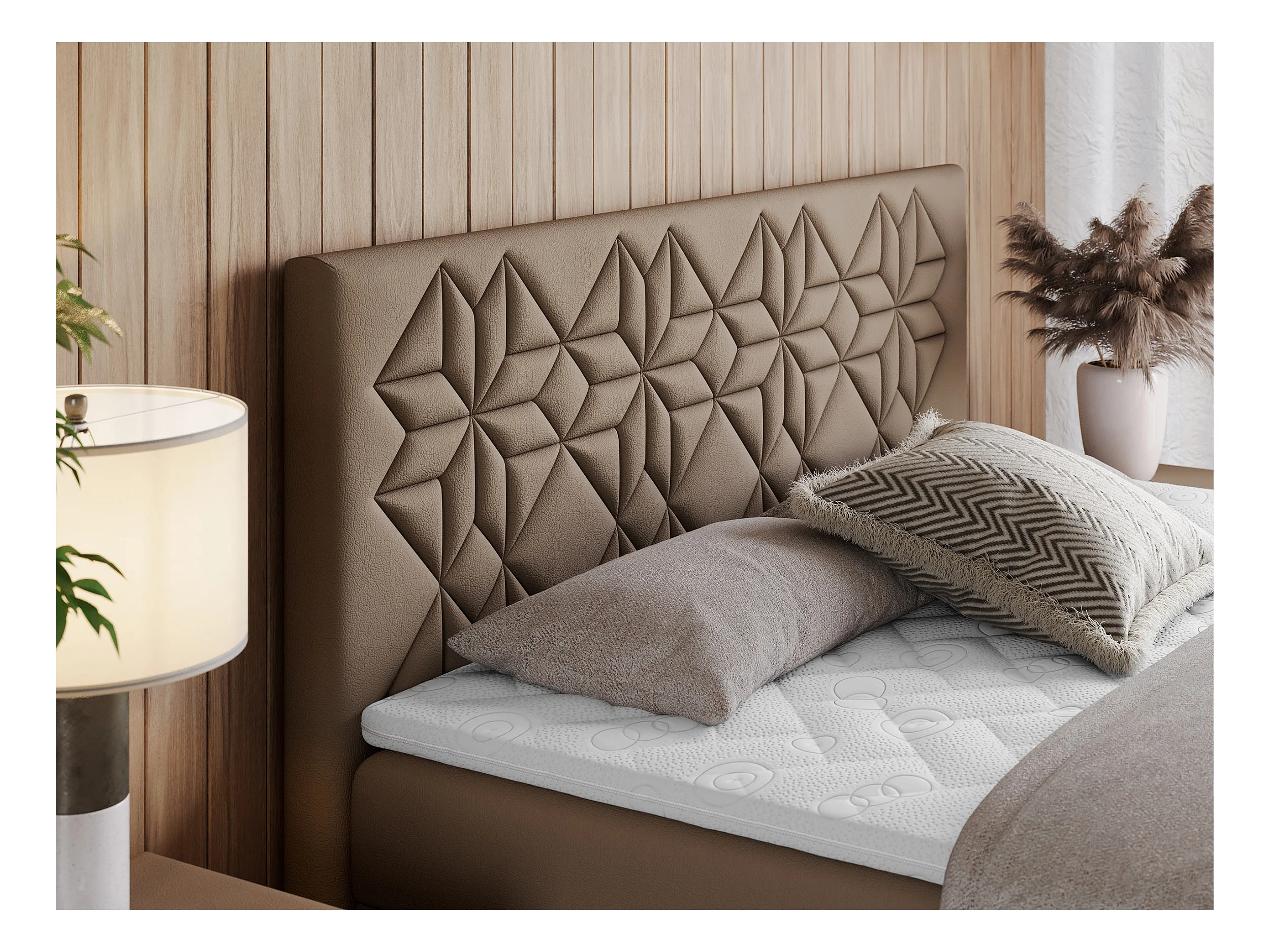 Boxspringbett LEILA - gestepptes Kopfteil, 7 Härtezonen Multipocket-Matratzen, Doppelbett mit Bettkästen - 160x200 cm - H4 - Braun Kunstleder