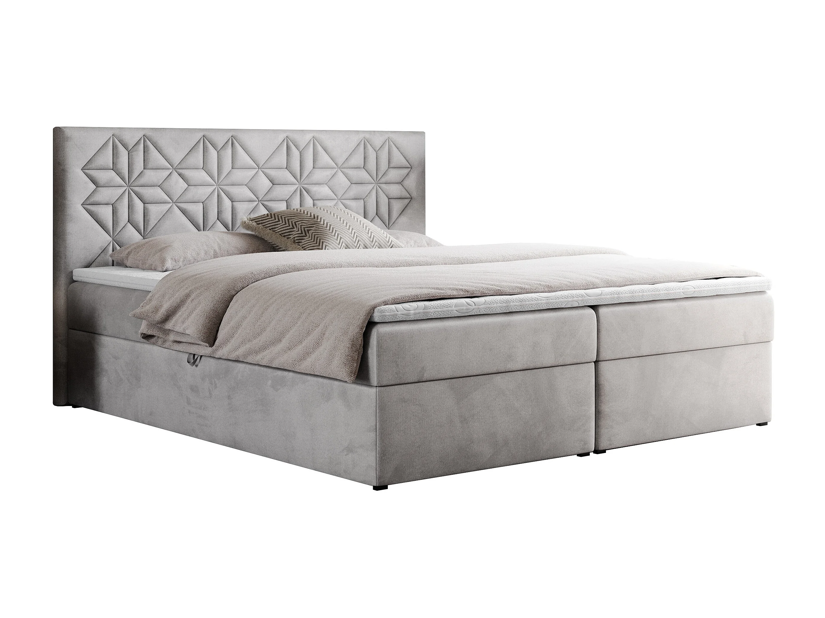 Boxspringbett LEILA - gestepptes Kopfteil, 7 Härtezonen Multipocket-Matratzen, Doppelbett mit Bettkästen - 180x200 cm - H3 - Hellgrau Velvet