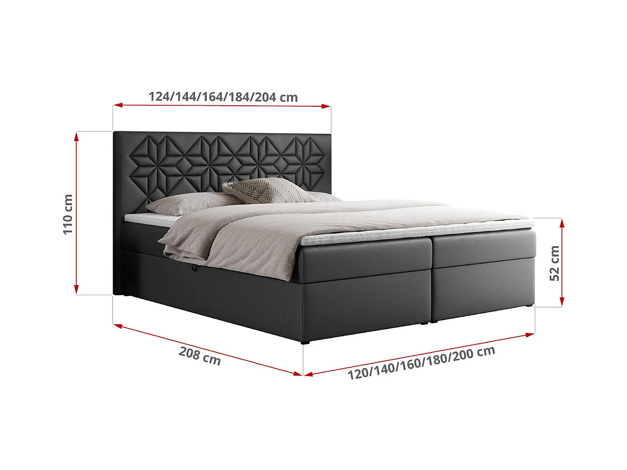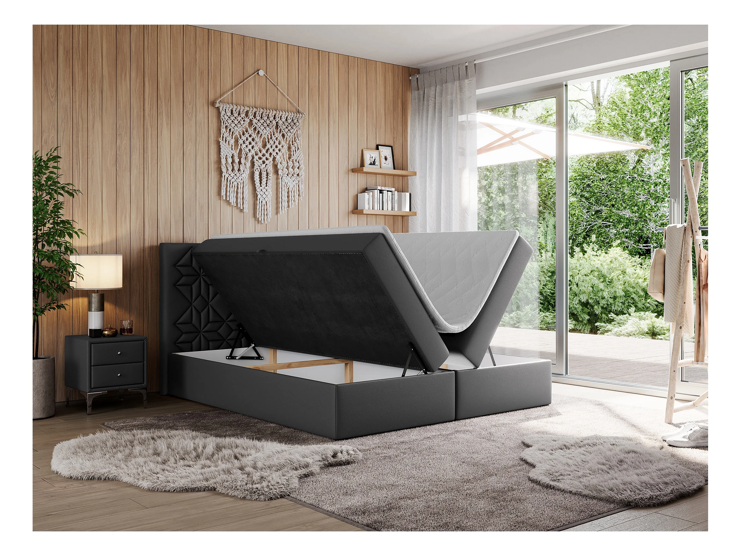 Boxspringbett LEILA - gestepptes Kopfteil, 7 Härtezonen Multipocket-Matratzen, Doppelbett mit Bettkästen - 200x200 cm - H4 - Dunkelgrau Kunstleder