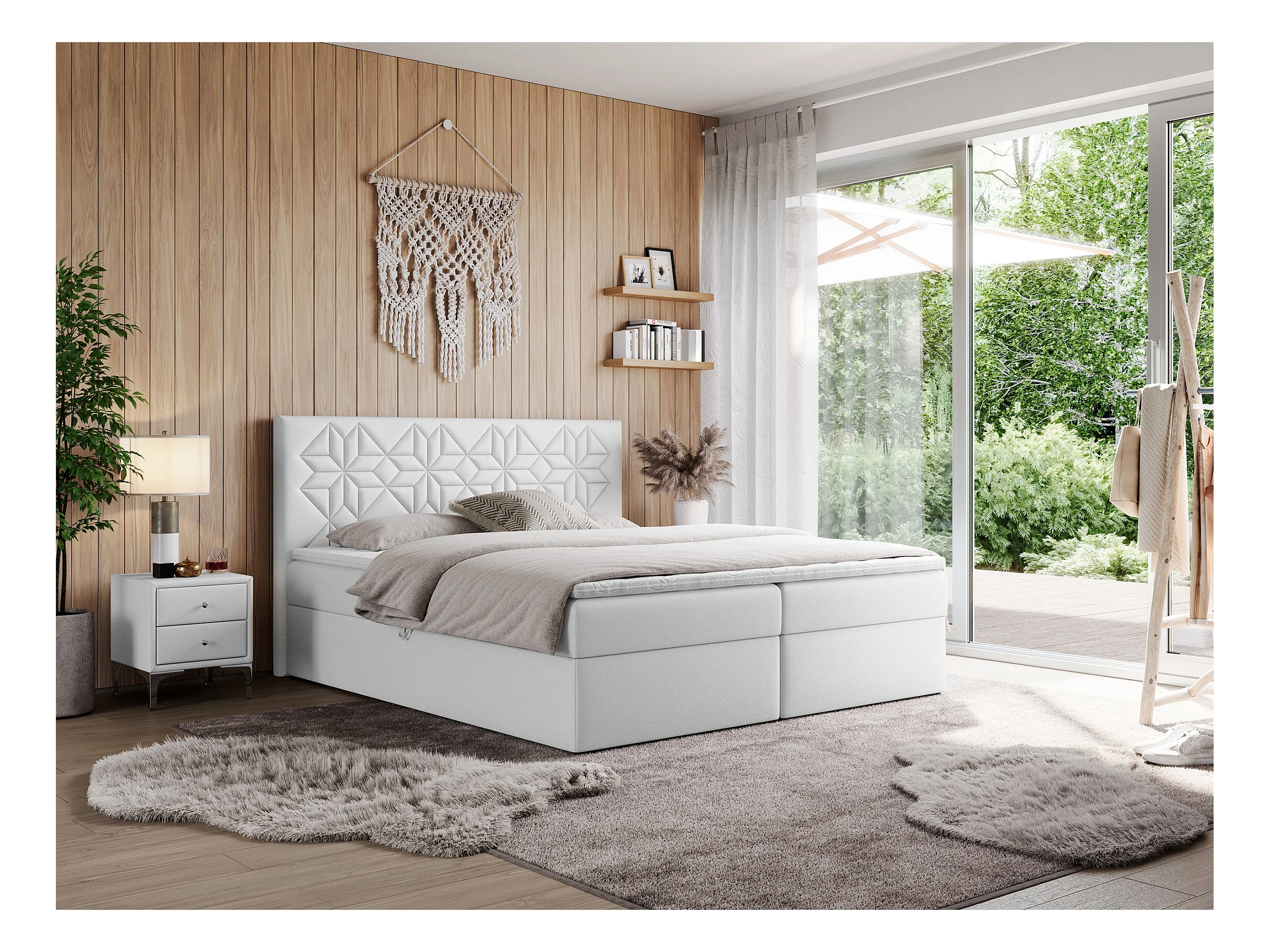 Boxspringbett LEILA - gestepptes Kopfteil, 7 Härtezonen Multipocket-Matratzen, Doppelbett mit Bettkästen - 200x200 cm - H4 - Weiß Kunstleder