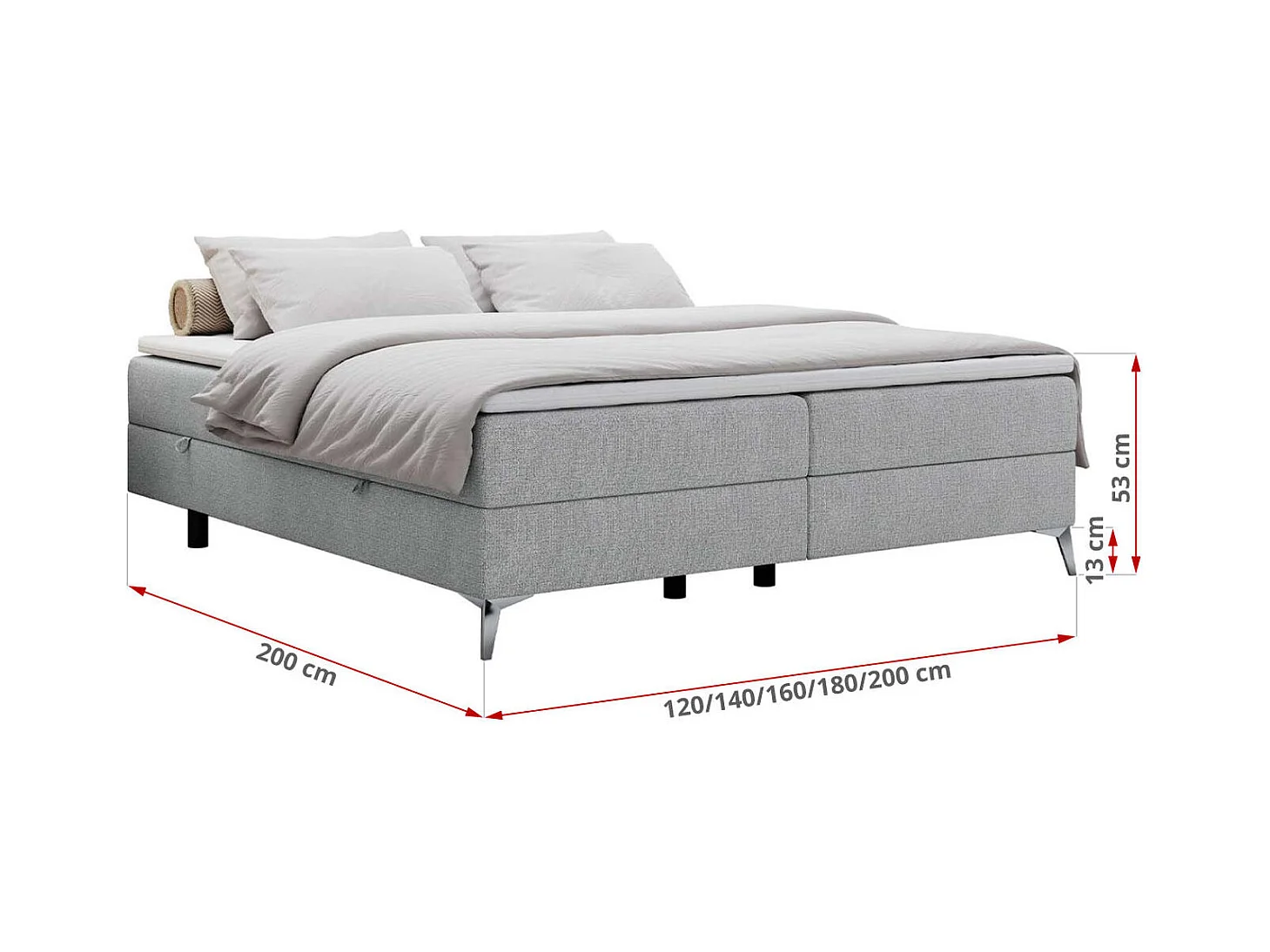 Boxspringbett LESS - Doppelbett mit zwei Bettkästen, 7 Härtezonen Multipocket-Matratzen, hohe Metallbeine - 120x200 cm - H4 - Hellgrau Strukture