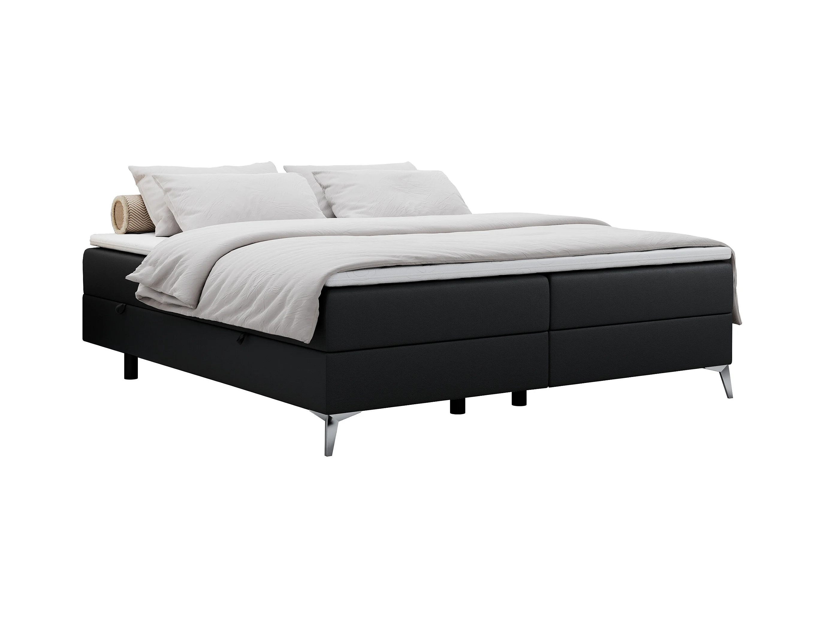 Boxspringbett LESS - Doppelbett mit zwei Bettkästen, 7 Härtezonen Multipocket-Matratzen, hohe Metallbeine - 160x200 cm - H3 - Schwarz Kunstleder