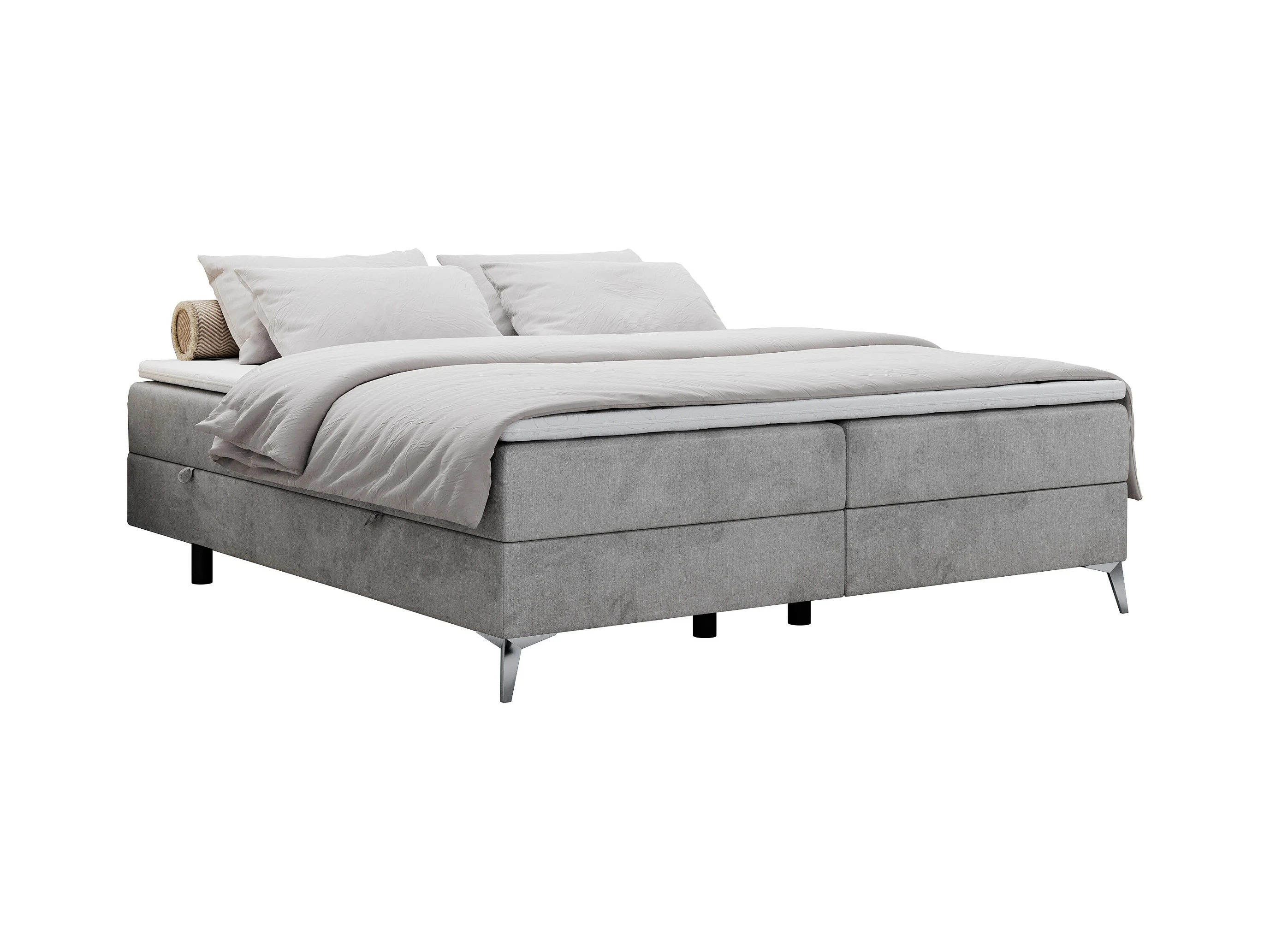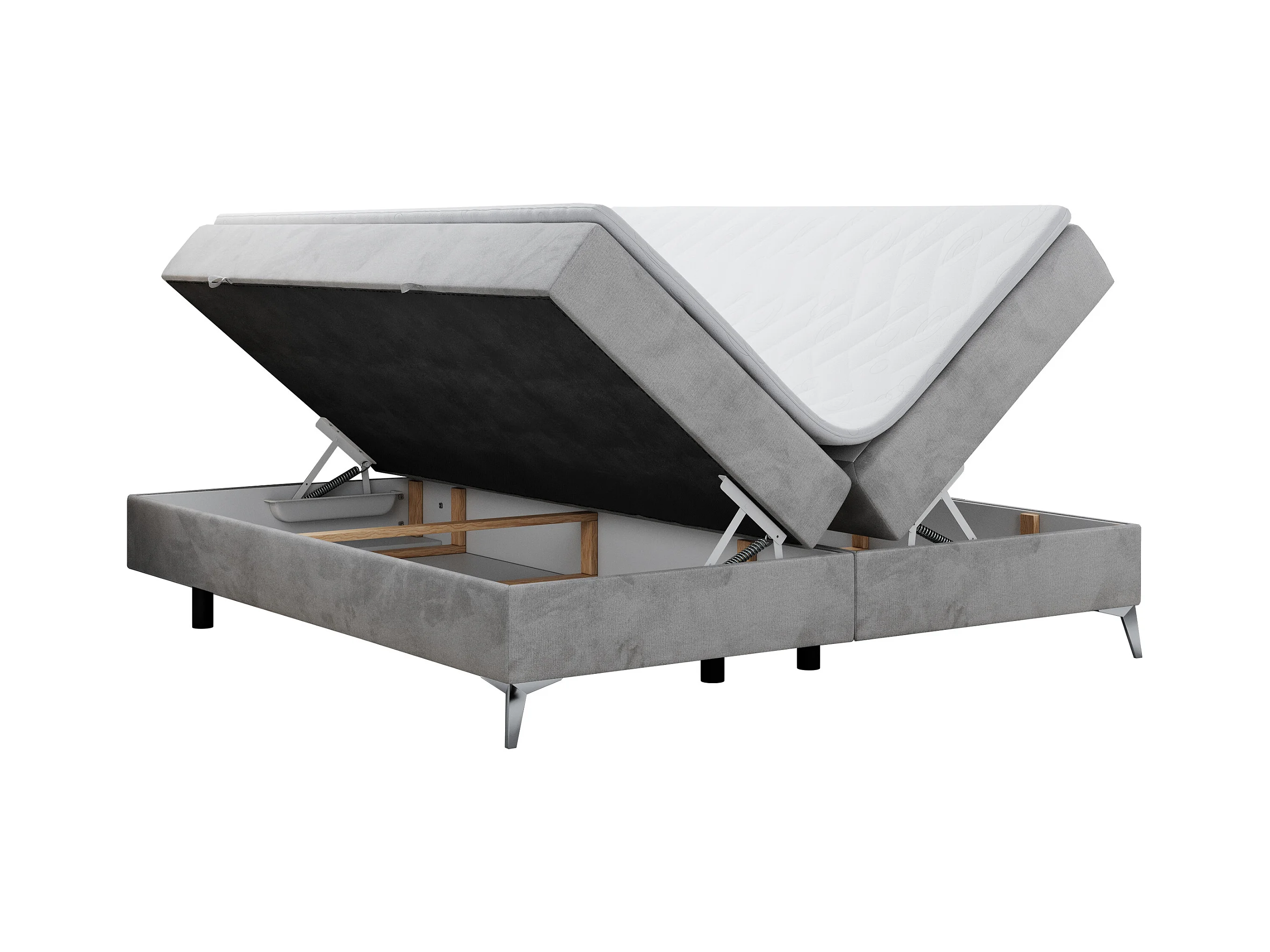 Boxspringbett LESS - Doppelbett mit zwei Bettkästen, 7 Härtezonen Multipocket-Matratzen, hohe Metallbeine - 160x200 cm - H4 - Hellgrau Velvet