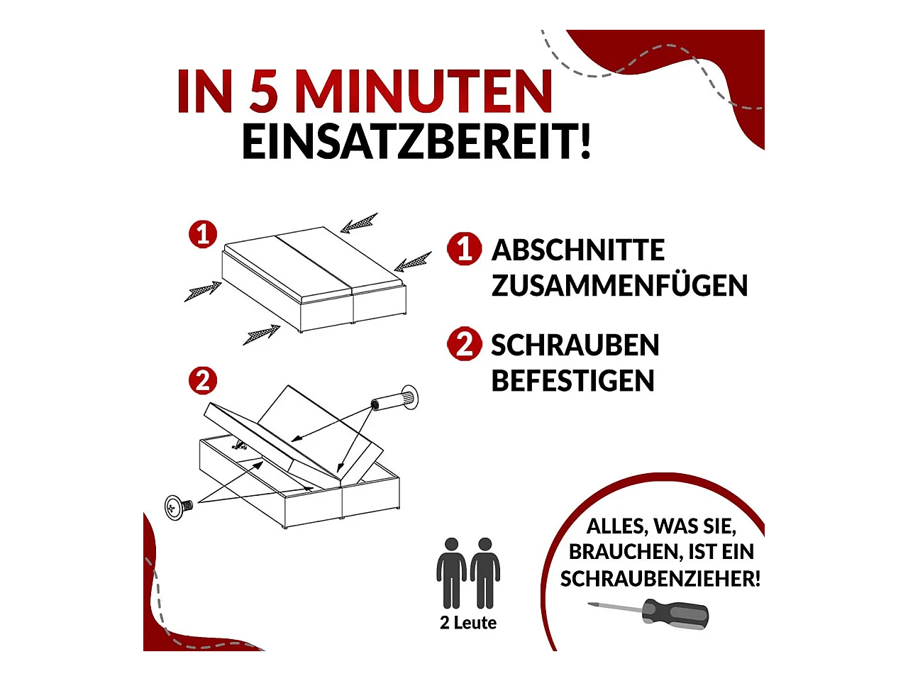 Boxspringbett LESS - Doppelbett mit zwei Bettkästen, 7 Härtezonen Multipocket-Matratzen, hohe Metallbeine - 180x200 cm - H4 - Hellgrau Velvet