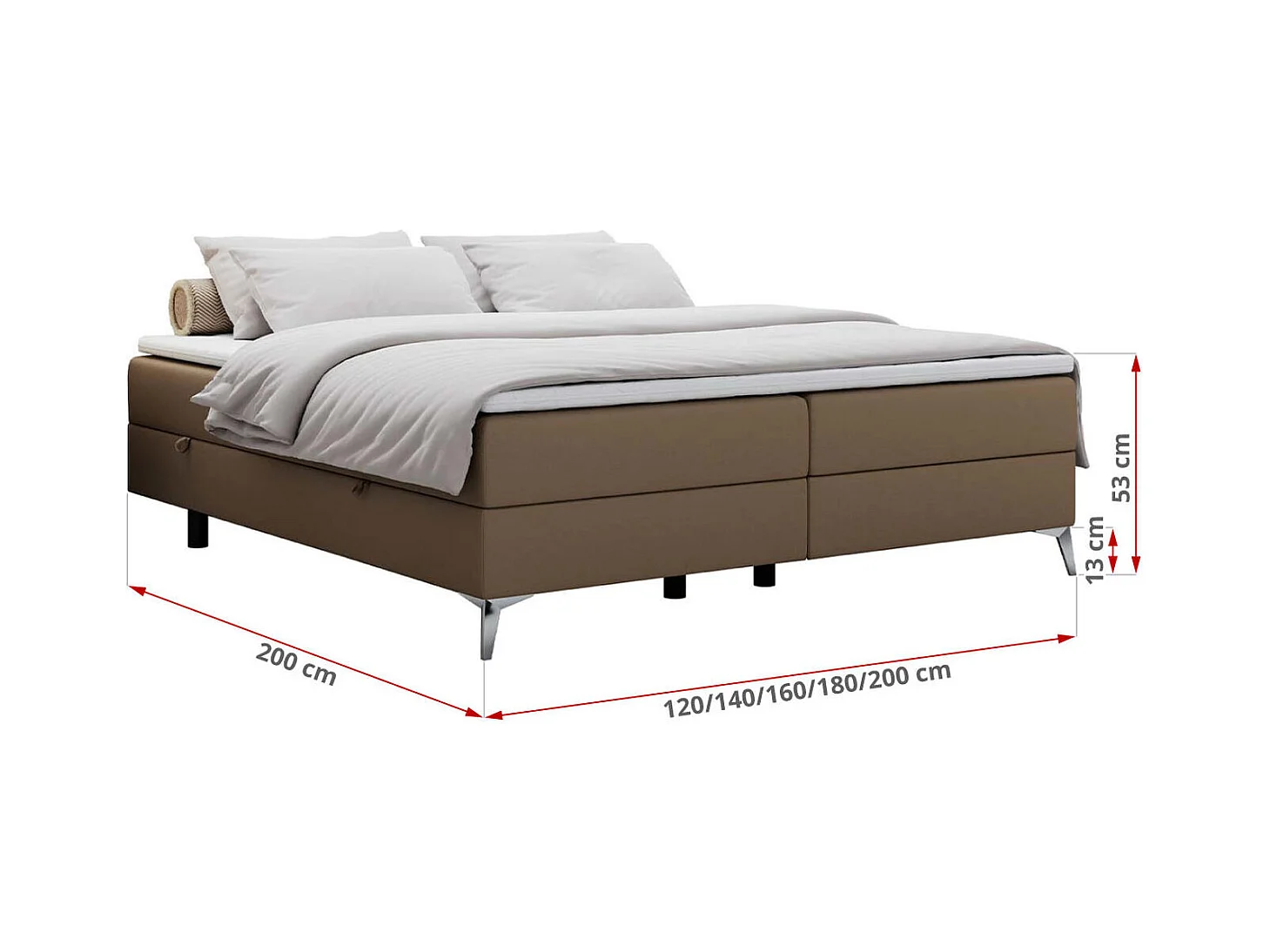 Boxspringbett LESS - Doppelbett mit zwei Bettkästen, 7 Härtezonen Multipocket-Matratzen, hohe Metallbeine - 200x200 cm - H4 - Braun Kunstleder