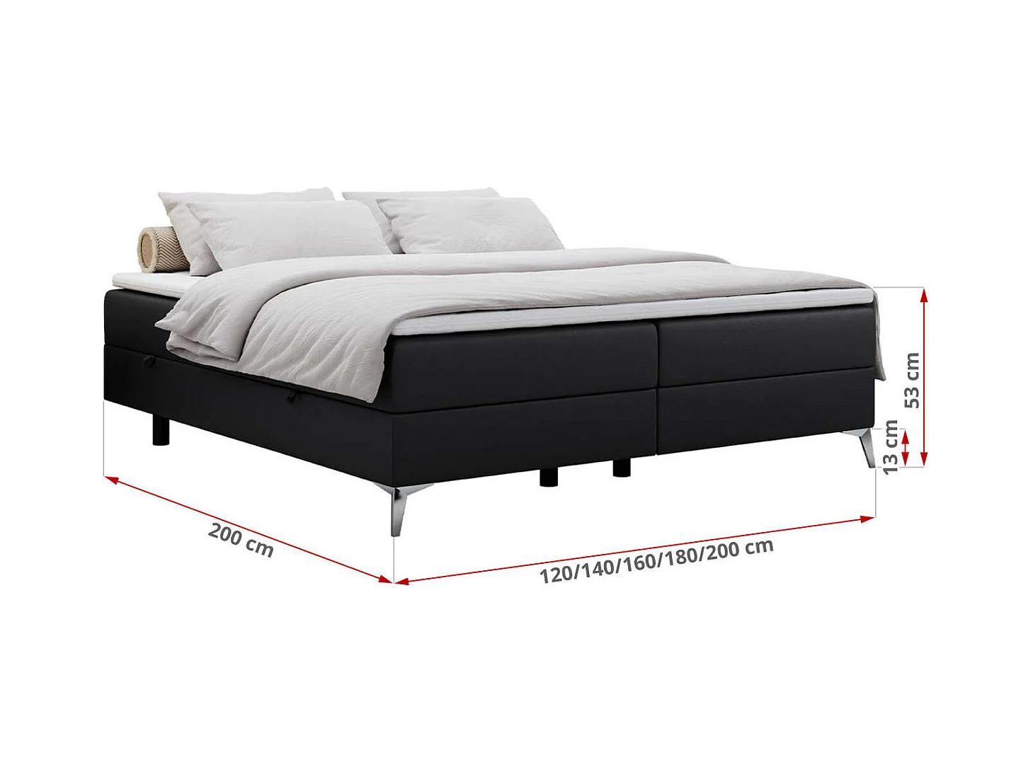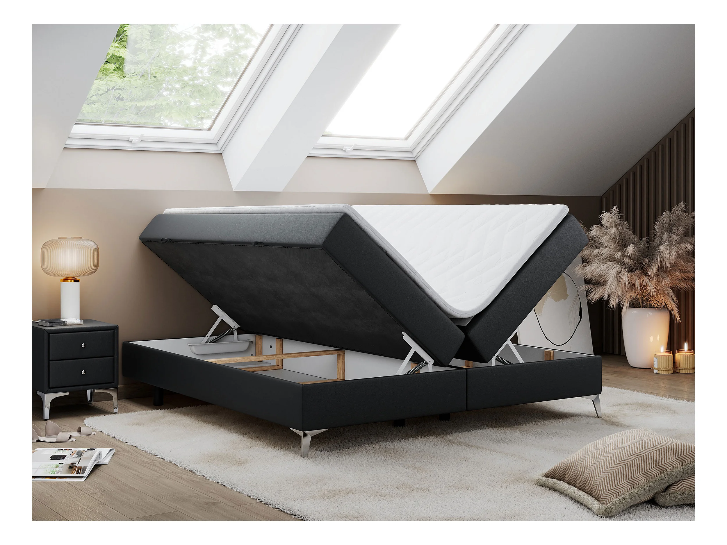 Boxspringbett LESS - Doppelbett mit zwei Bettkästen, 7 Härtezonen Multipocket-Matratzen, hohe Metallbeine - 200x200 cm - H4 - Schwarz Kunstleder