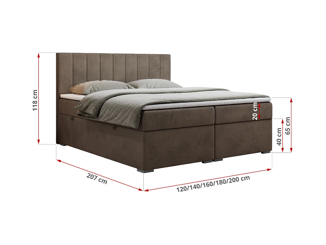 Boxspringbett LOPE - genähtes Kopfteil, Doppelbett mit Stauraum, Multipocket-Matratze, Topper - 120x200 cm - H4 - Braun Velvet
