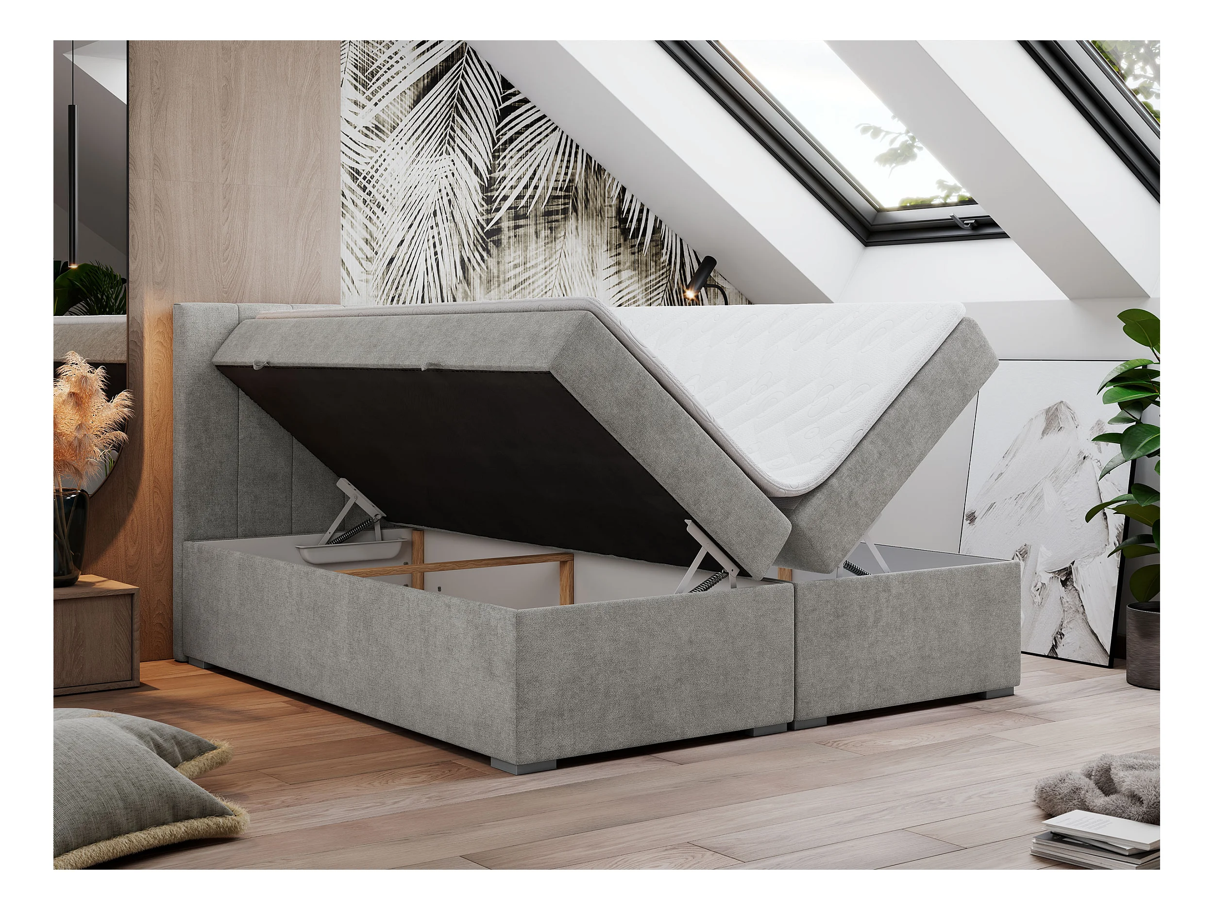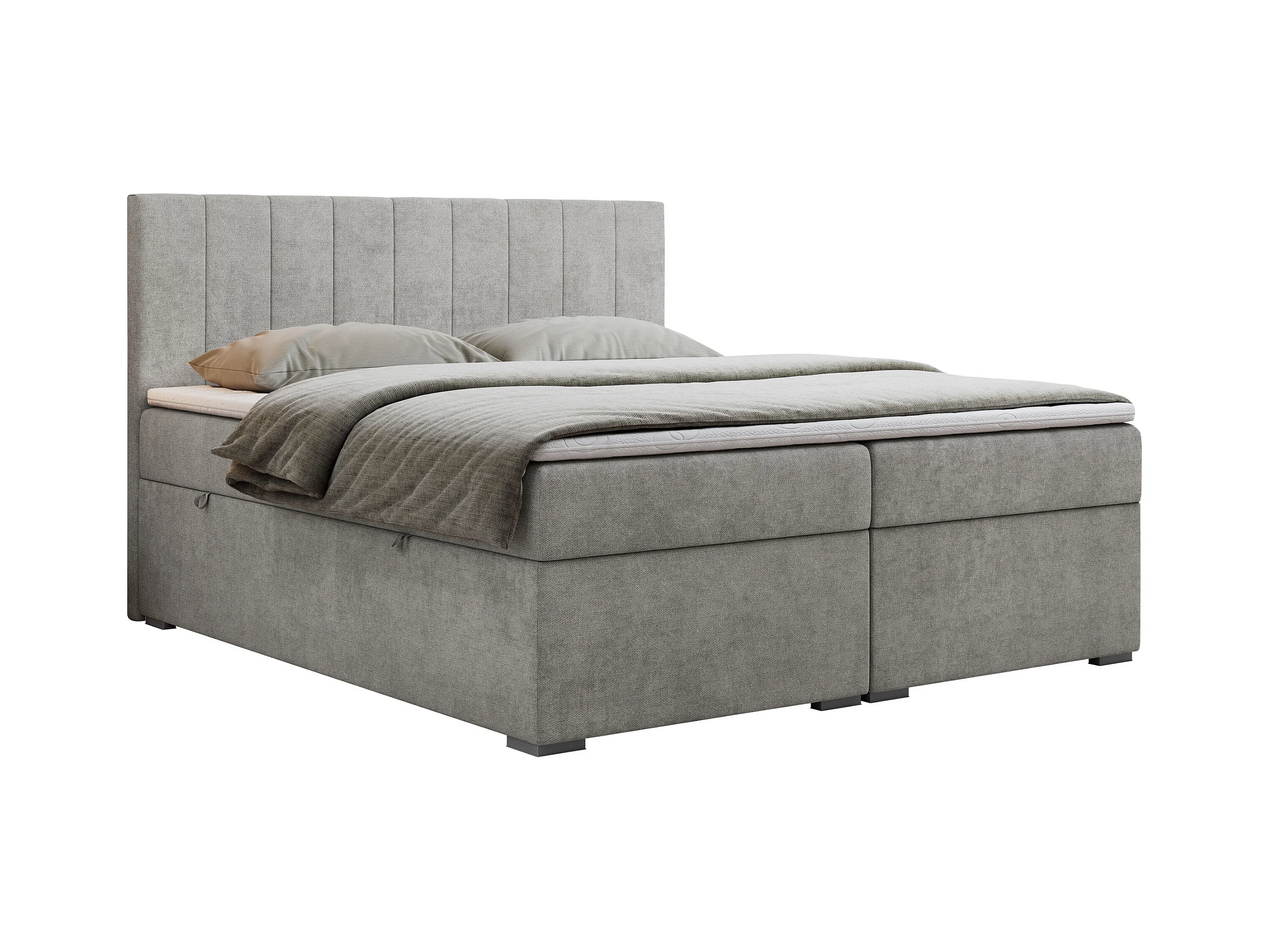 Boxspringbett LOPE - genähtes Kopfteil, Doppelbett mit Stauraum, Multipocket-Matratze, Topper - 120x200 cm - H4 - Hellgrau Strukture