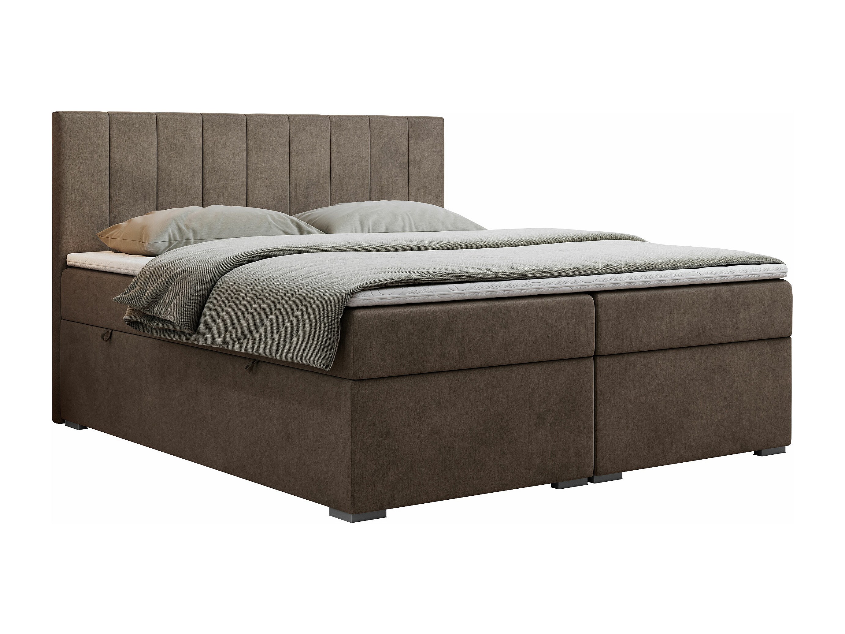 Boxspringbett LOPE - genähtes Kopfteil, Doppelbett mit Stauraum, Multipocket-Matratze, Topper - 140x200 cm - H4 - Braun Velvet
