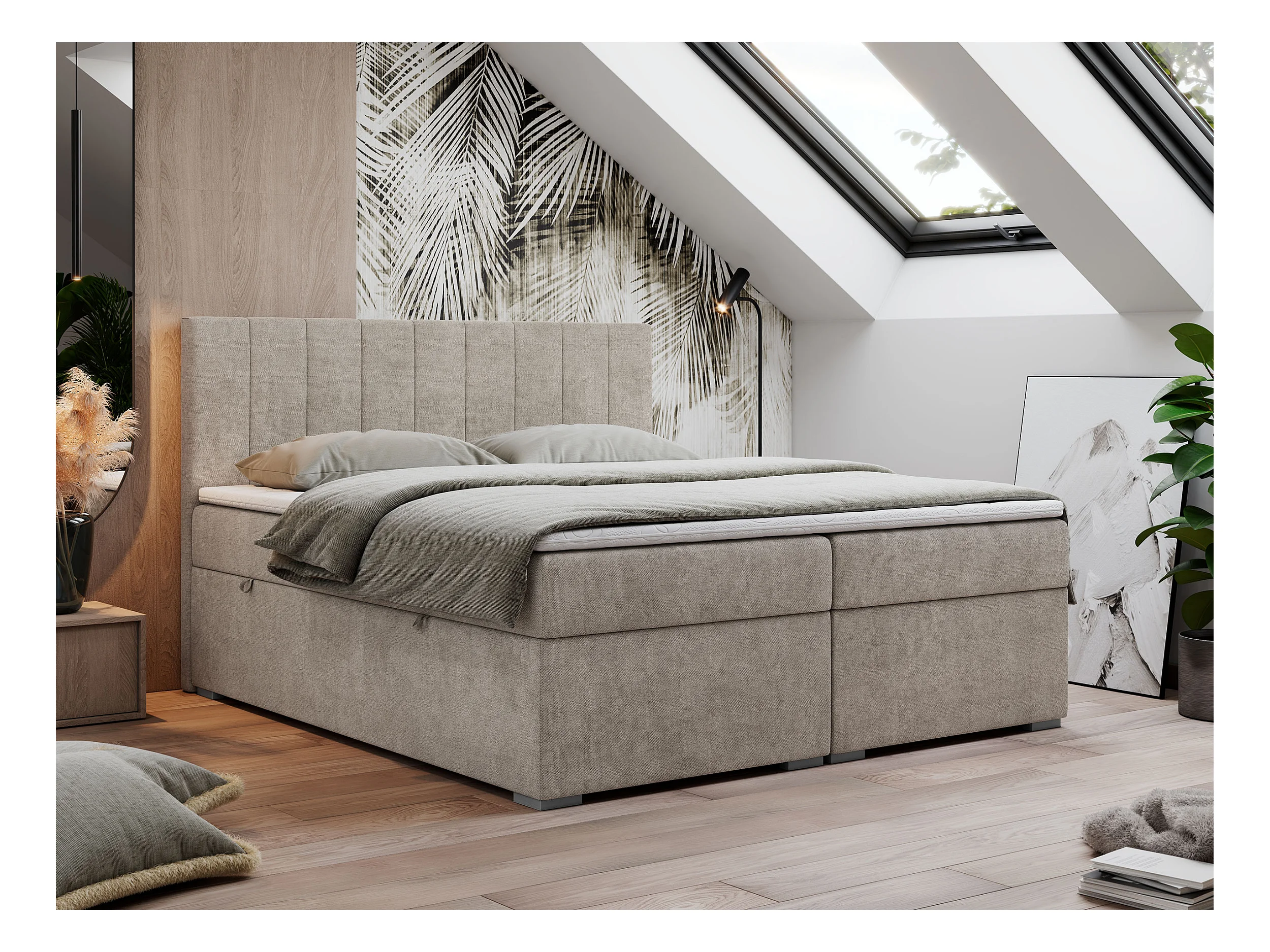 Boxspringbett LOPE - genähtes Kopfteil, Doppelbett mit Stauraum, Multipocket-Matratze, Topper - 160x200 cm - H4 - Beige Strukture