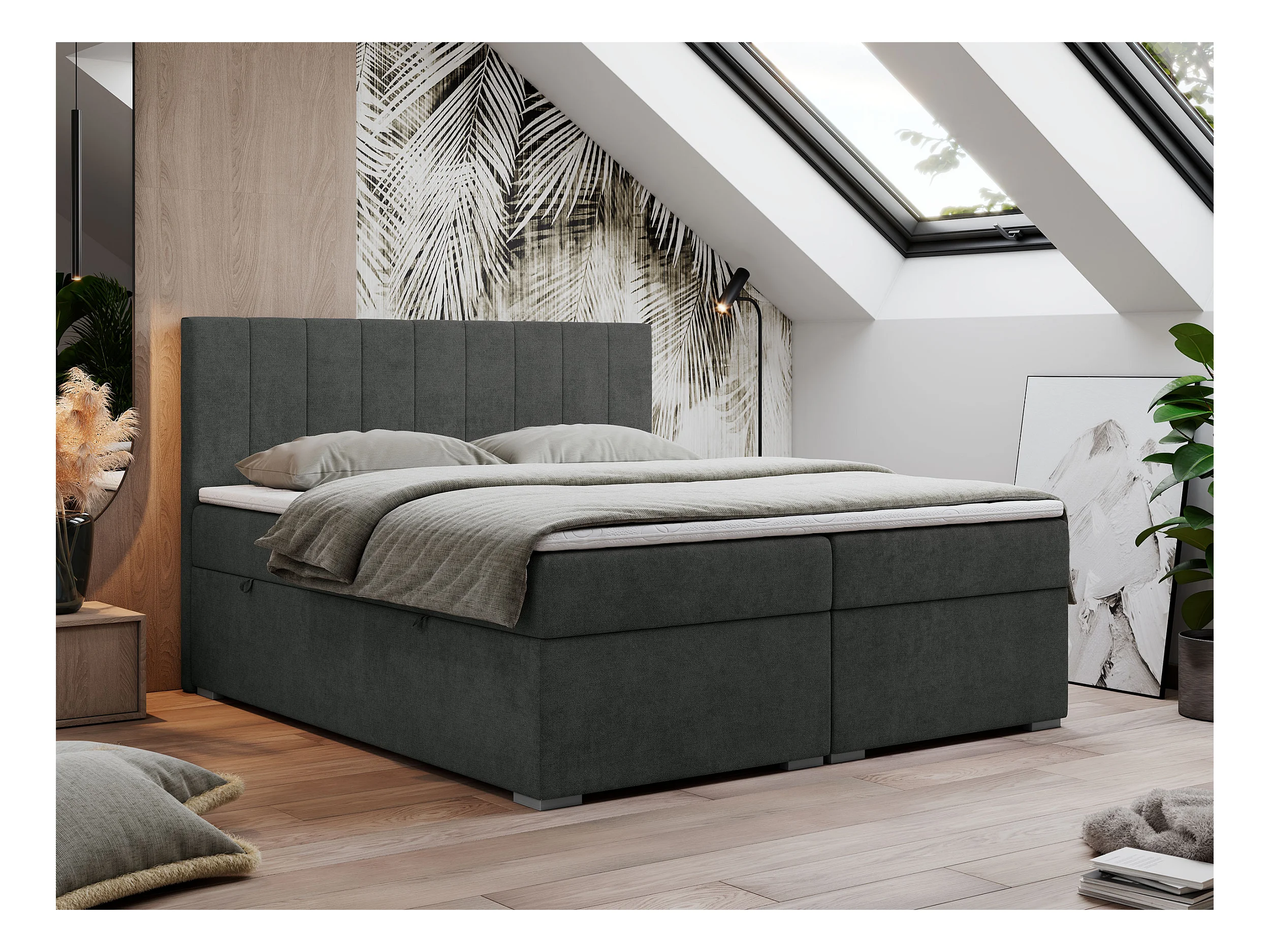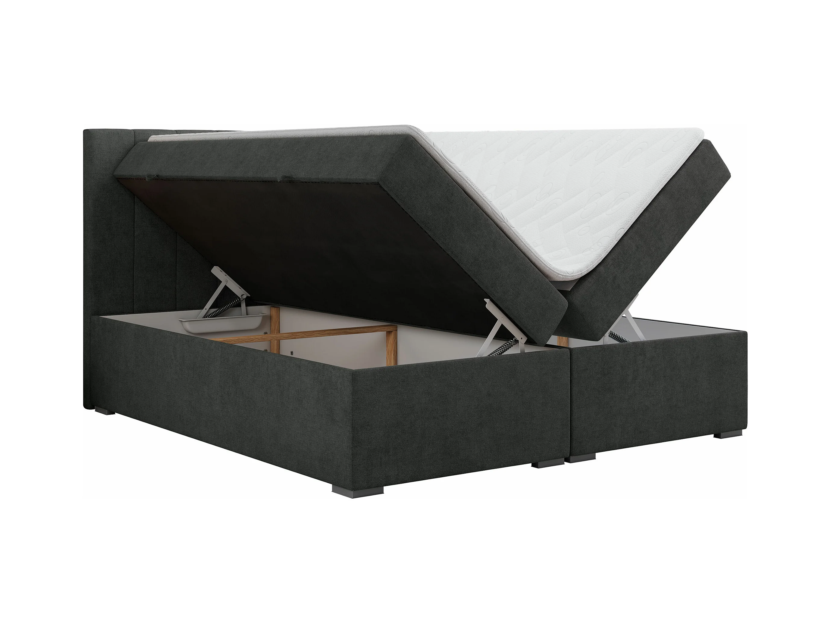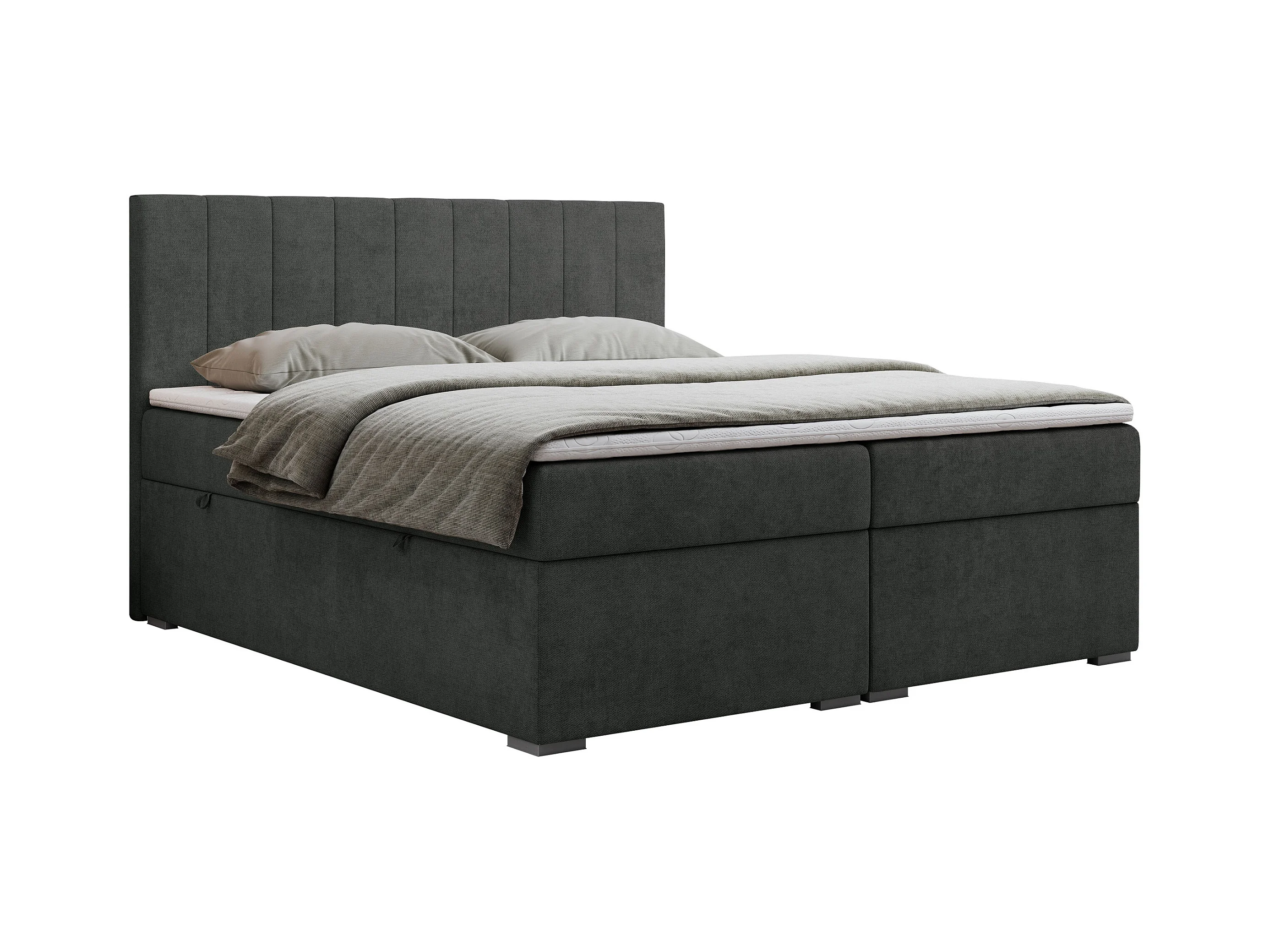 Boxspringbett LOPE - genähtes Kopfteil, Doppelbett mit Stauraum, Multipocket-Matratze, Topper - 160x200 cm - H4 - Dunkelgrau Strukture