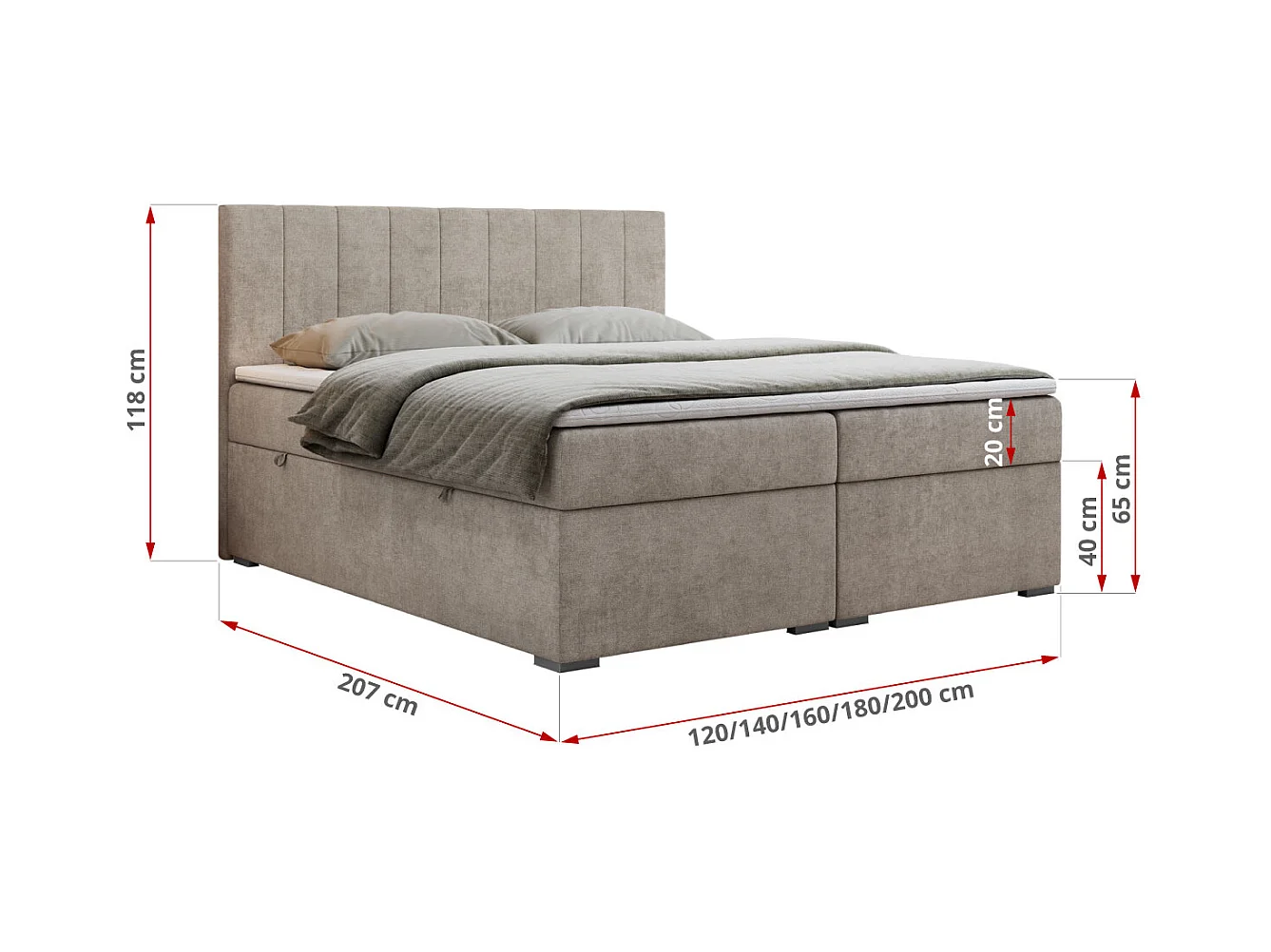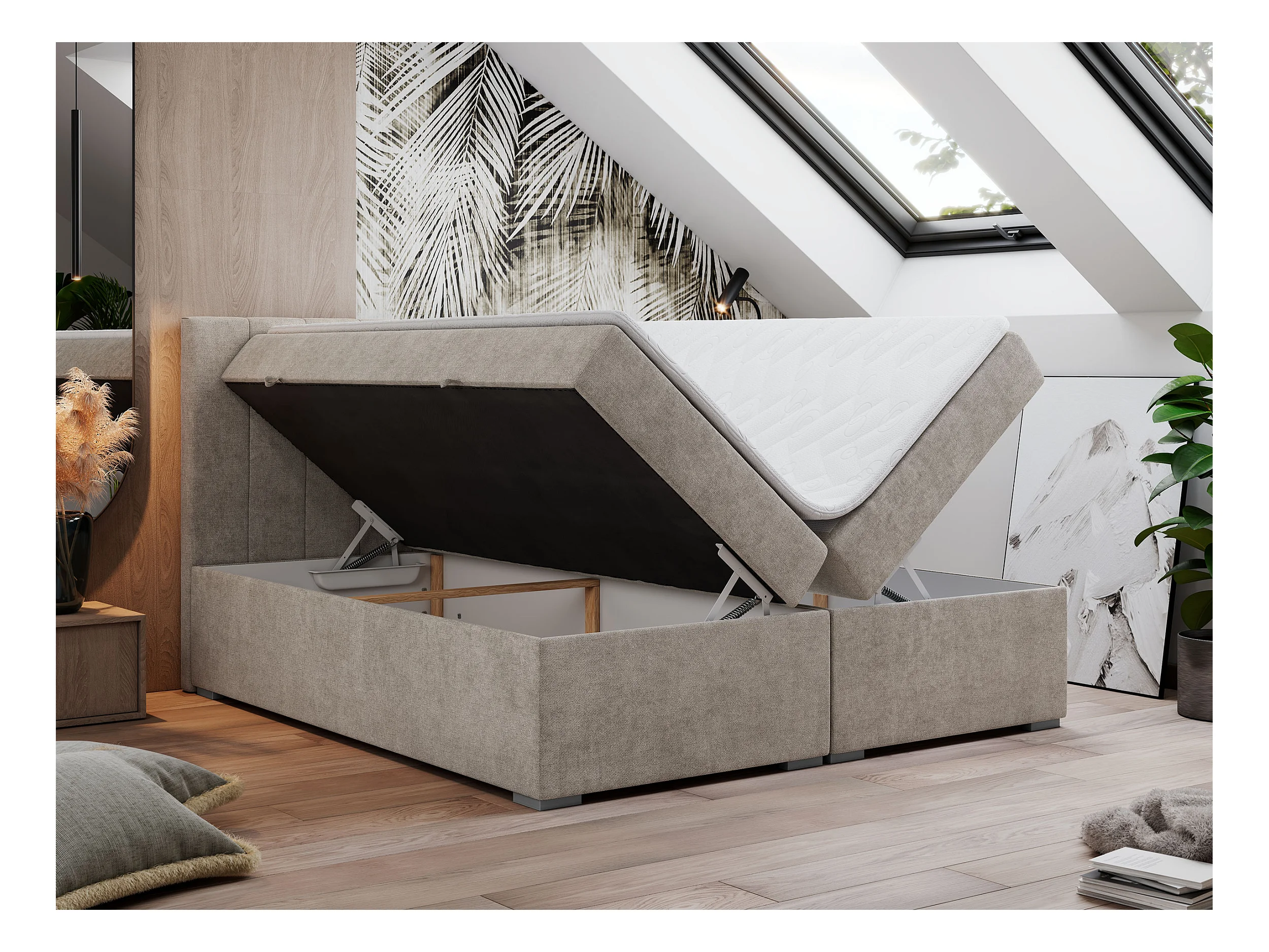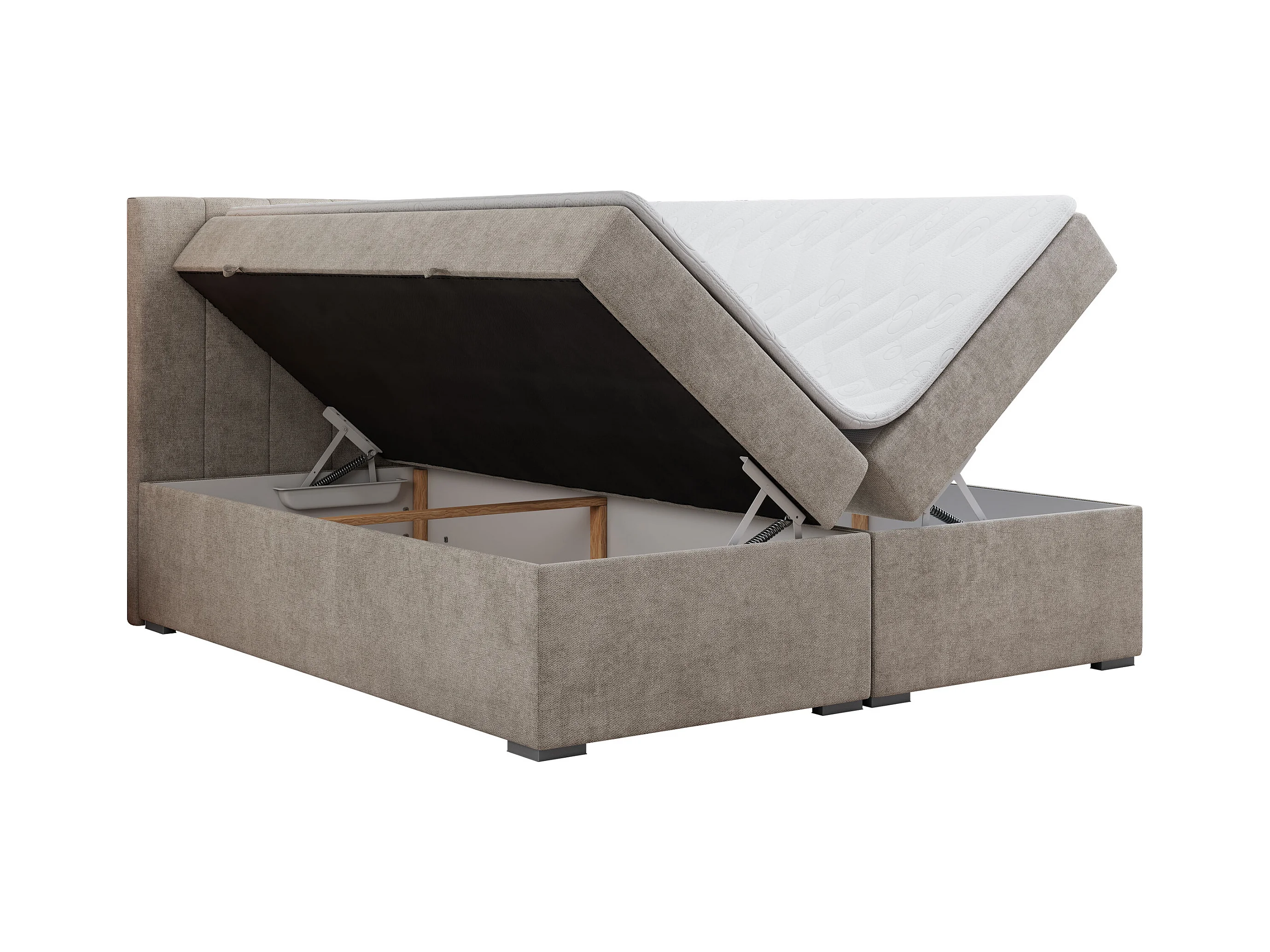 Boxspringbett LOPE - genähtes Kopfteil, Doppelbett mit Stauraum, Multipocket-Matratze, Topper - 180x200 cm - H4 - Beige Strukture