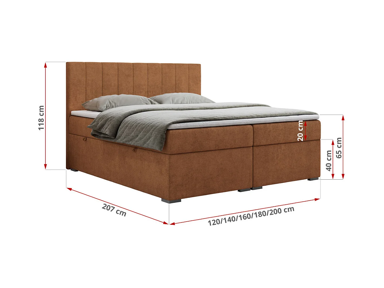 Boxspringbett LOPE - genähtes Kopfteil, Doppelbett mit Stauraum, Multipocket-Matratze, Topper - 180x200 cm - H4 - Orange Strukture
