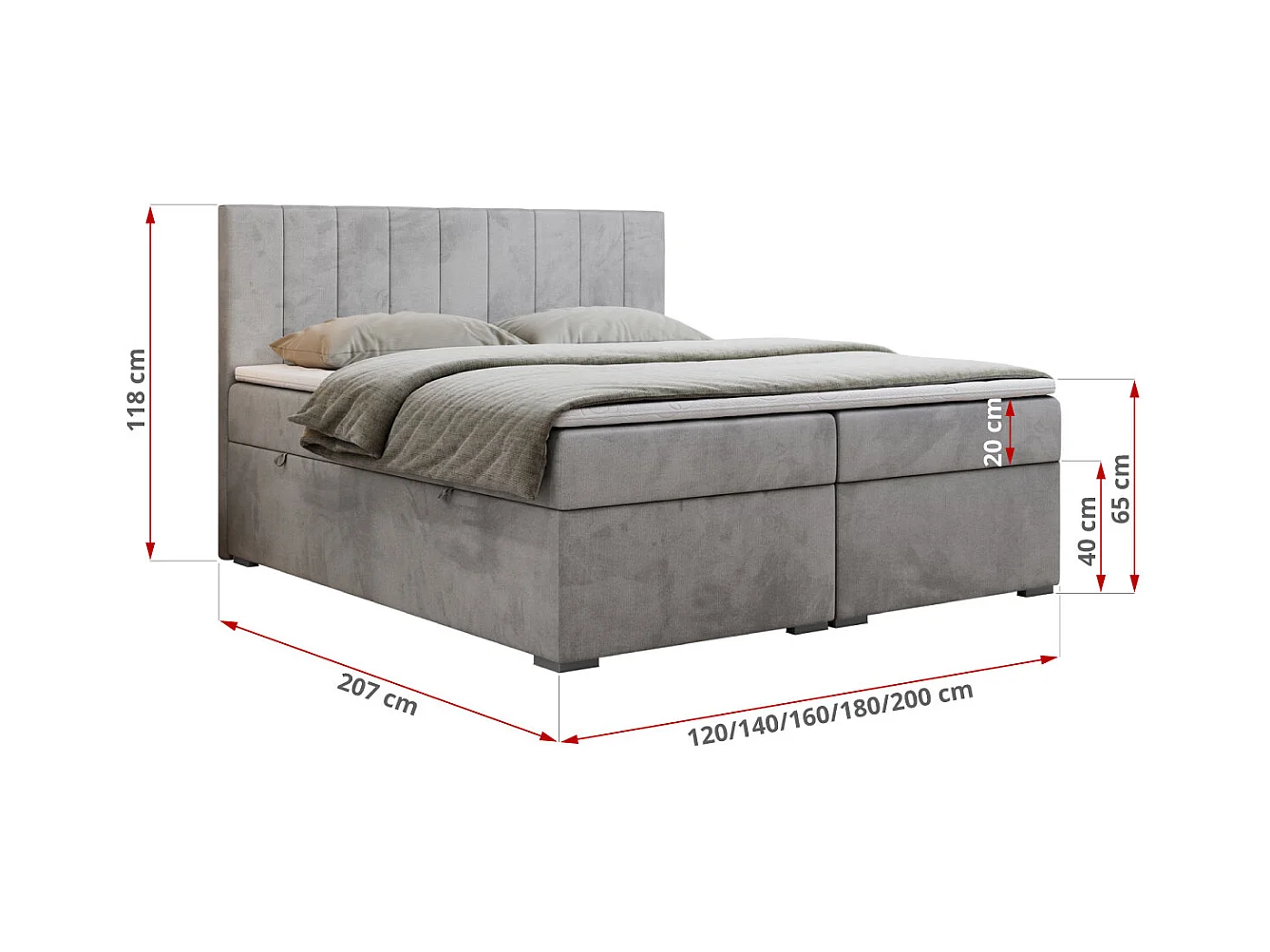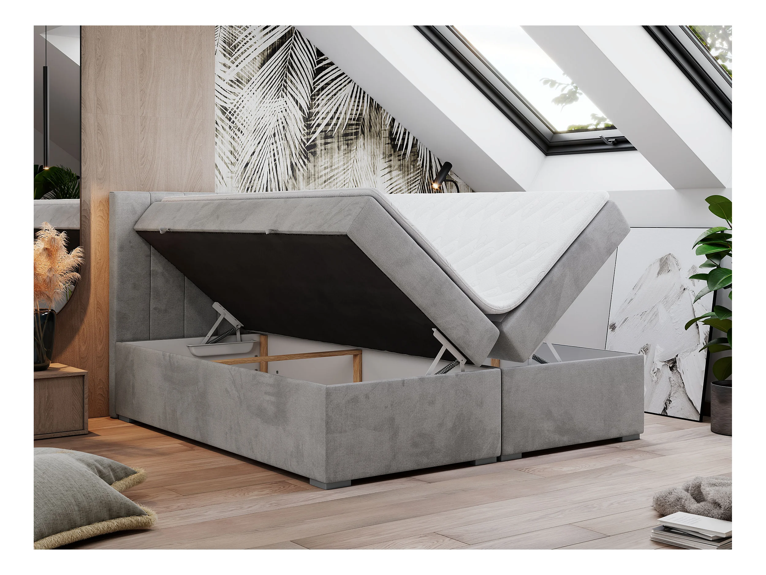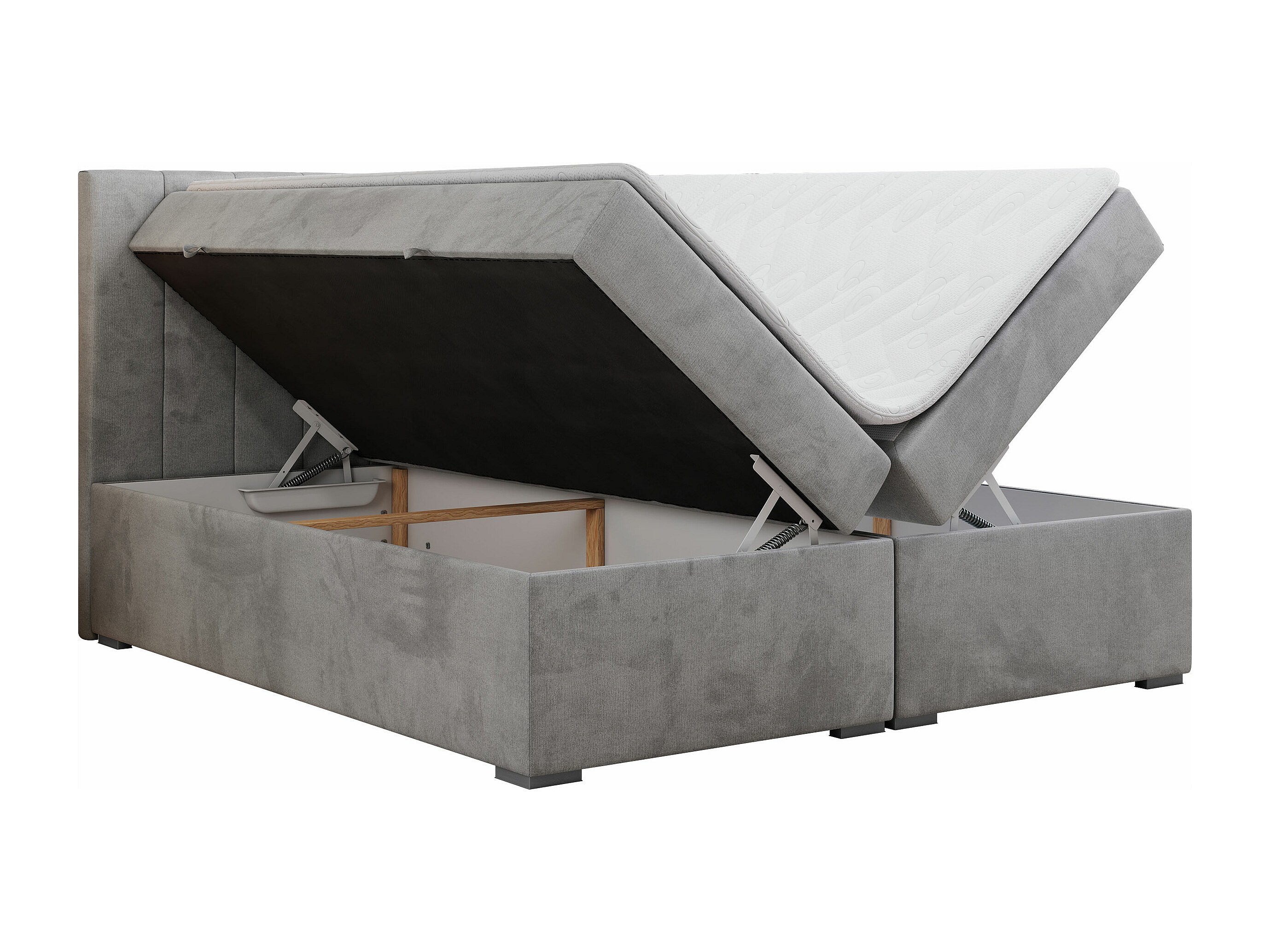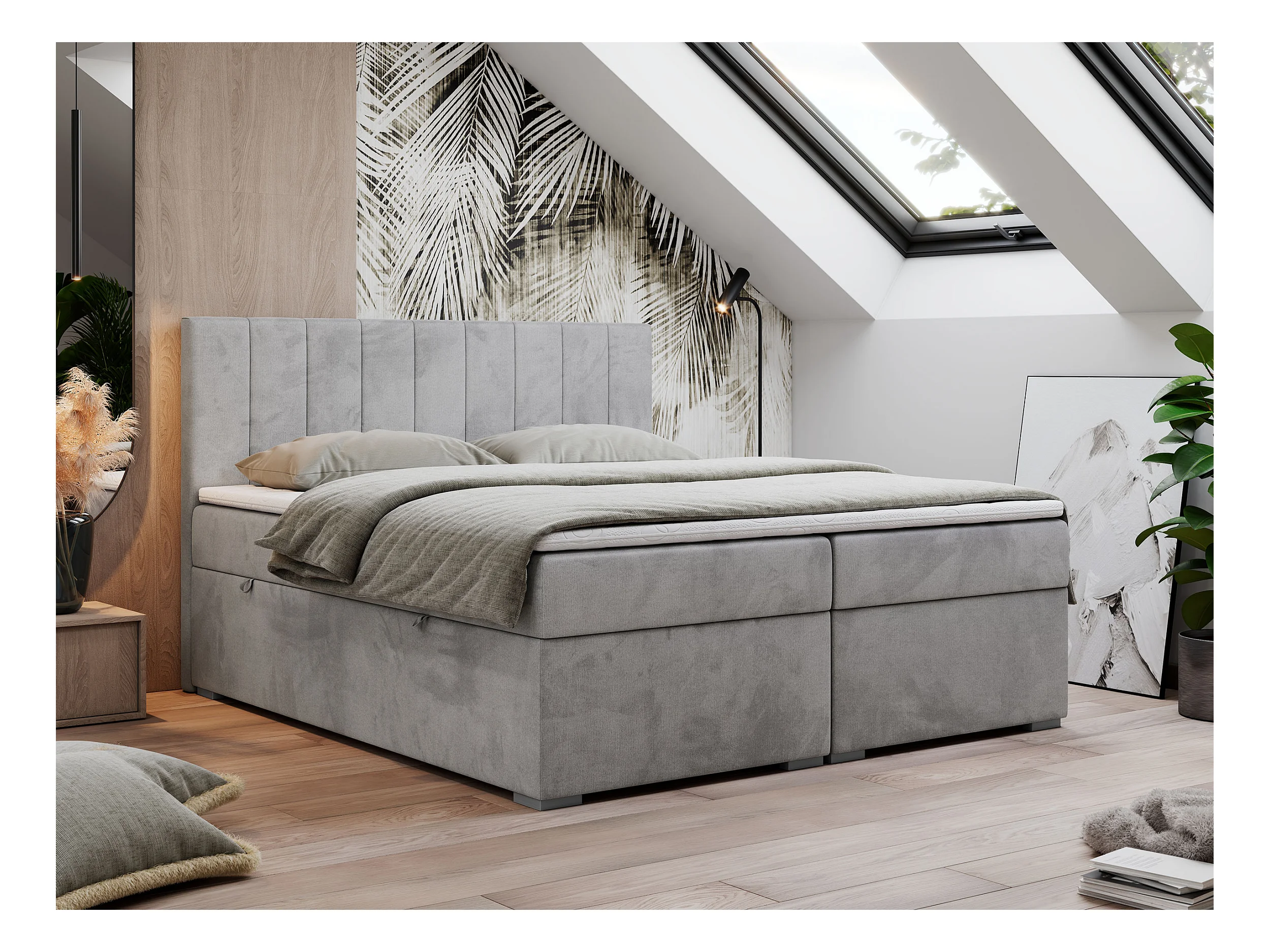 Boxspringbett LOPE - genähtes Kopfteil, Doppelbett mit Stauraum, Multipocket-Matratze, Topper - 200x200 cm - H4 - Hellgrau Velvet