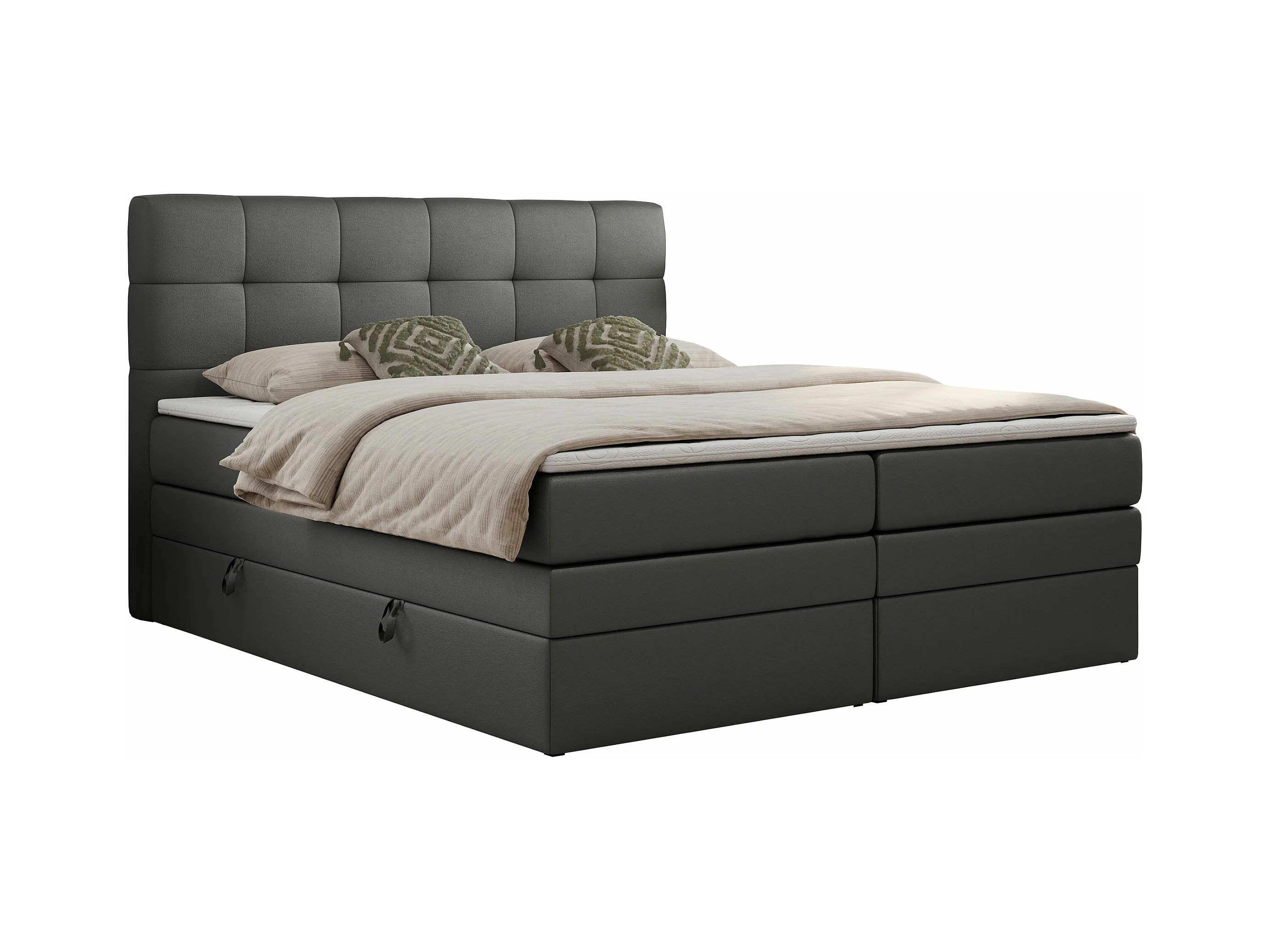 Boxspringbett LUKA KING, mit gestepptem Kopfteil, zwei Bettkästen, Multipocket-Matratze und Topper - 120x200 cm - H3 - Dunkelgrau Kunstleder