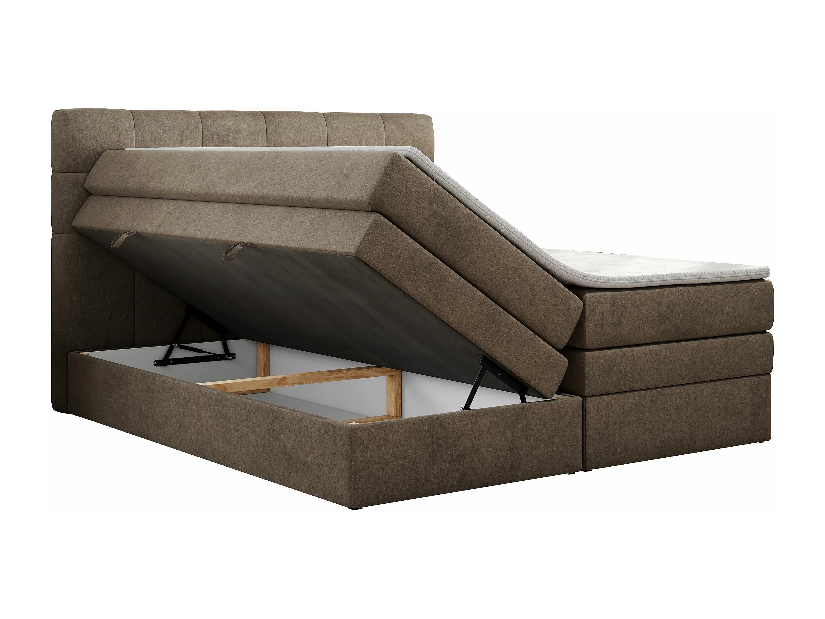 Boxspringbett LUKA KING, mit gestepptem Kopfteil, zwei Bettkästen, Multipocket-Matratze und Topper - 120x200 cm - H4 - Braun Velvet