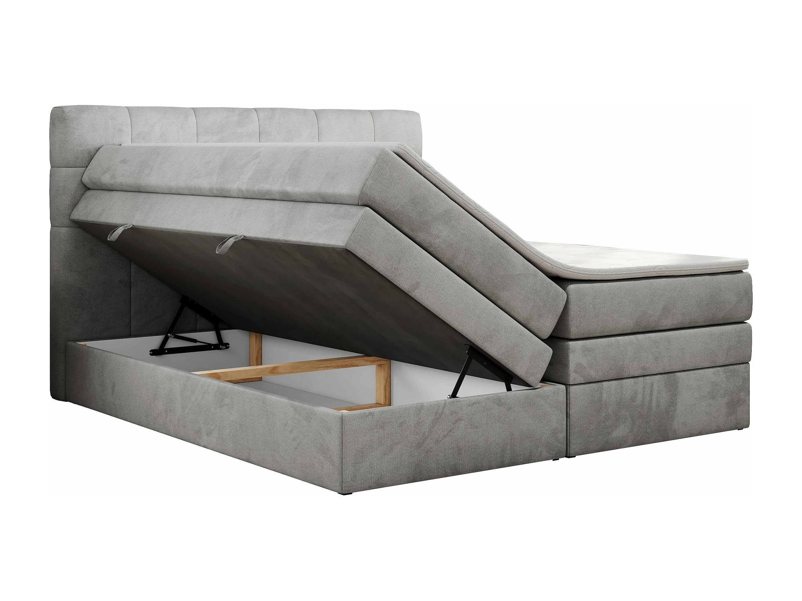 Boxspringbett LUKA KING, mit gestepptem Kopfteil, zwei Bettkästen, Multipocket-Matratze und Topper - 120x200 cm - H4 - Hellgrau Velvet