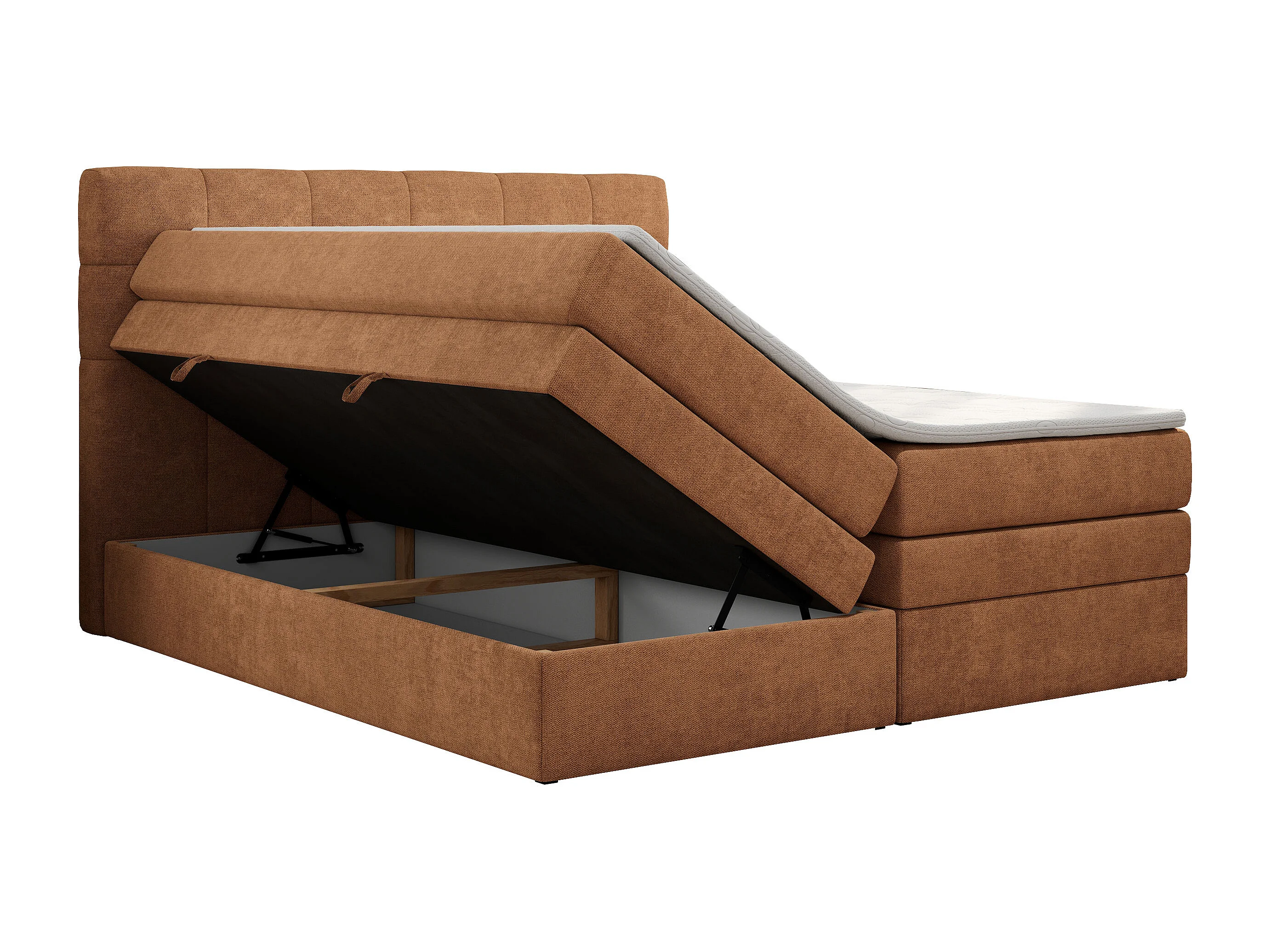 Boxspringbett LUKA KING, mit gestepptem Kopfteil, zwei Bettkästen, Multipocket-Matratze und Topper - 140x200 cm - H4 - Orange Strukture