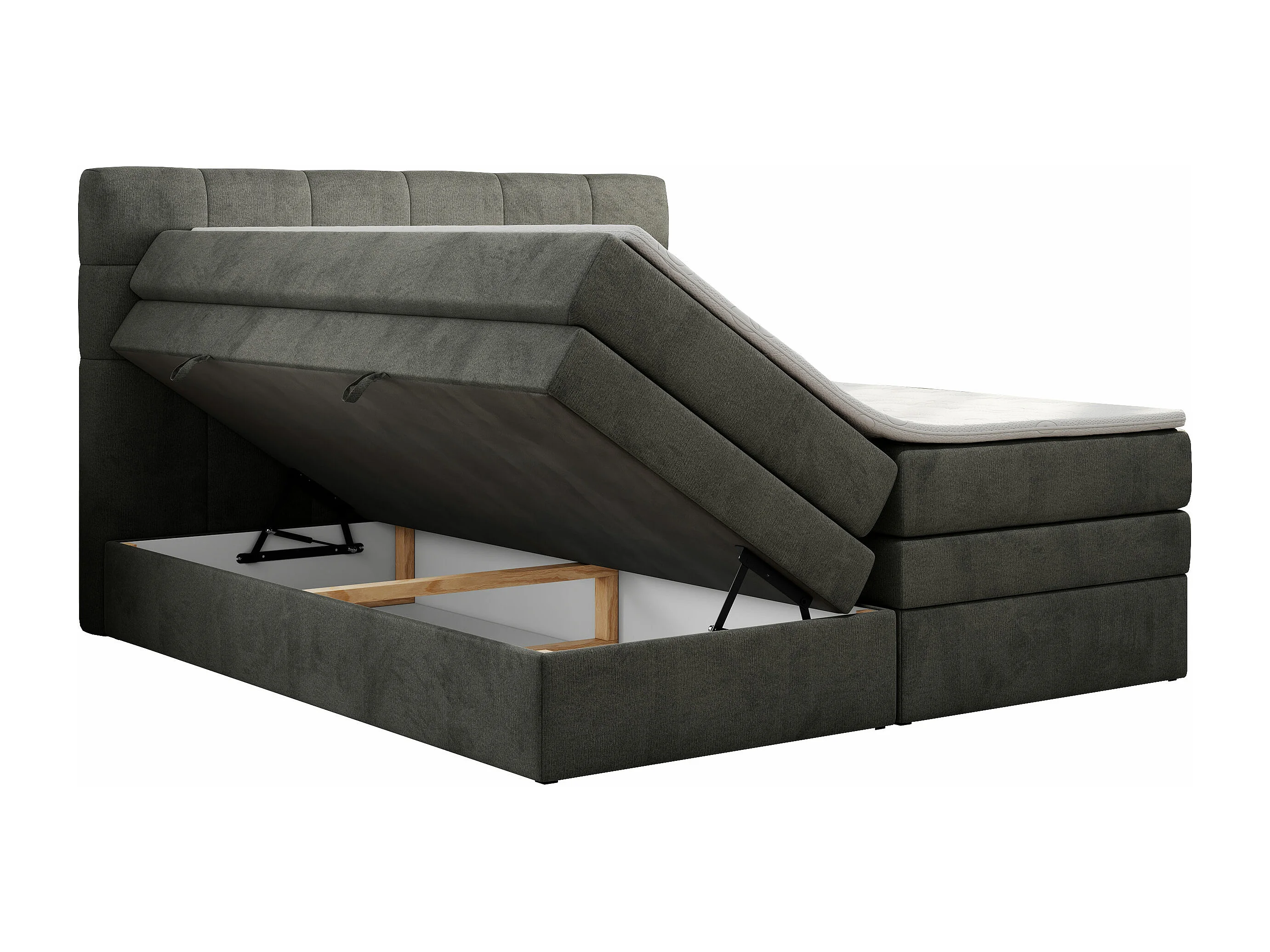 Boxspringbett LUKA KING, mit gestepptem Kopfteil, zwei Bettkästen, Multipocket-Matratze und Topper - 160x200 cm - H4 - Dunkelgrau Velvet