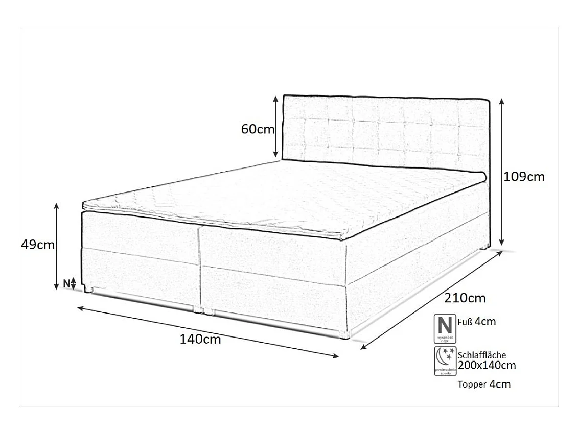 Boxspringbett MALMO mit Topper zwei Bettkästen Matratze Doppelbett 140 cm (Fresh 32 - grau)