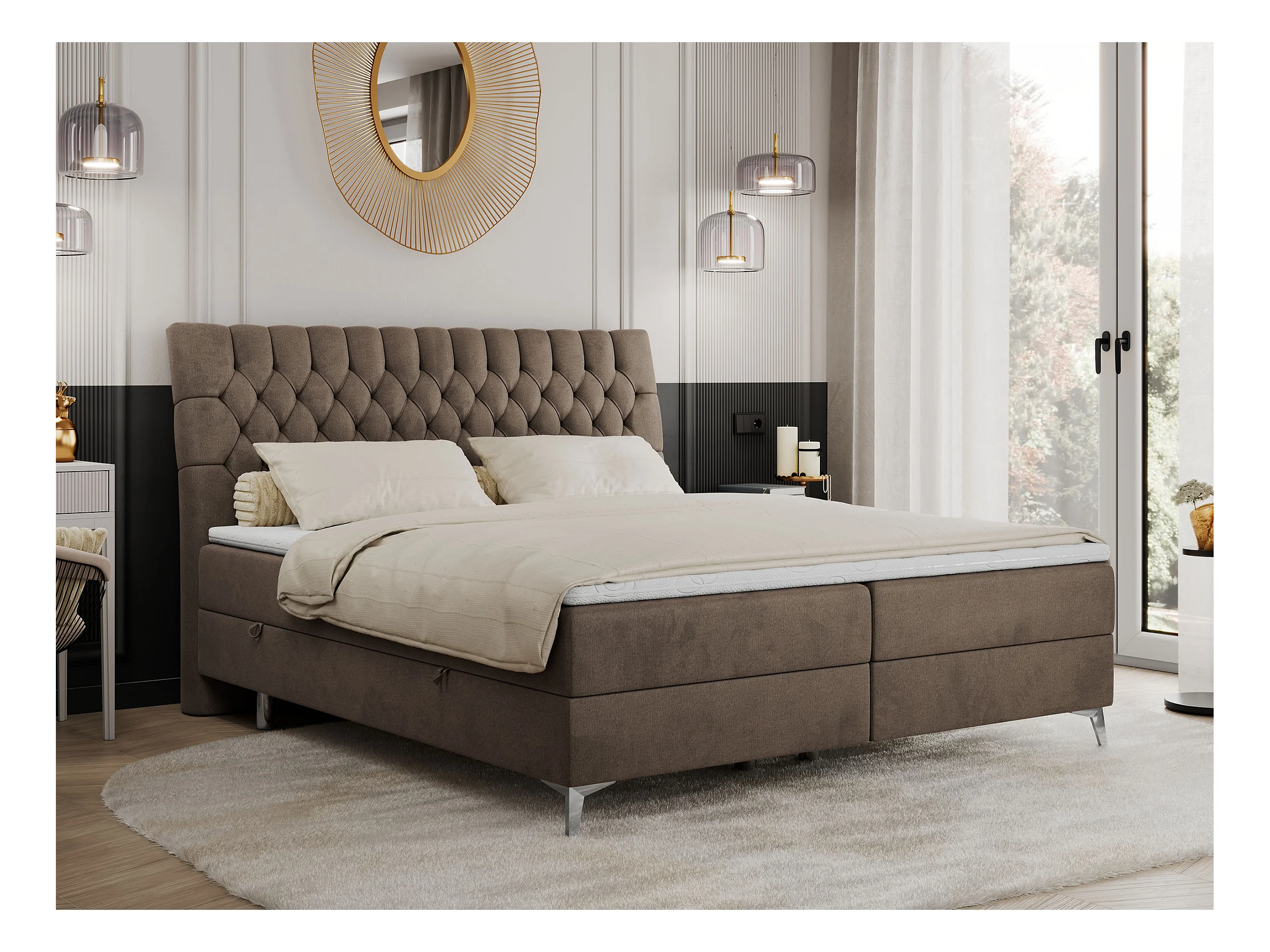 Boxspringbett MILEN - gepolstertes Schlafzimmerbett, zwei Multipocket-Matratze, dekorative hohe Beine - 120x200 cm - H3 - Braun Velvet