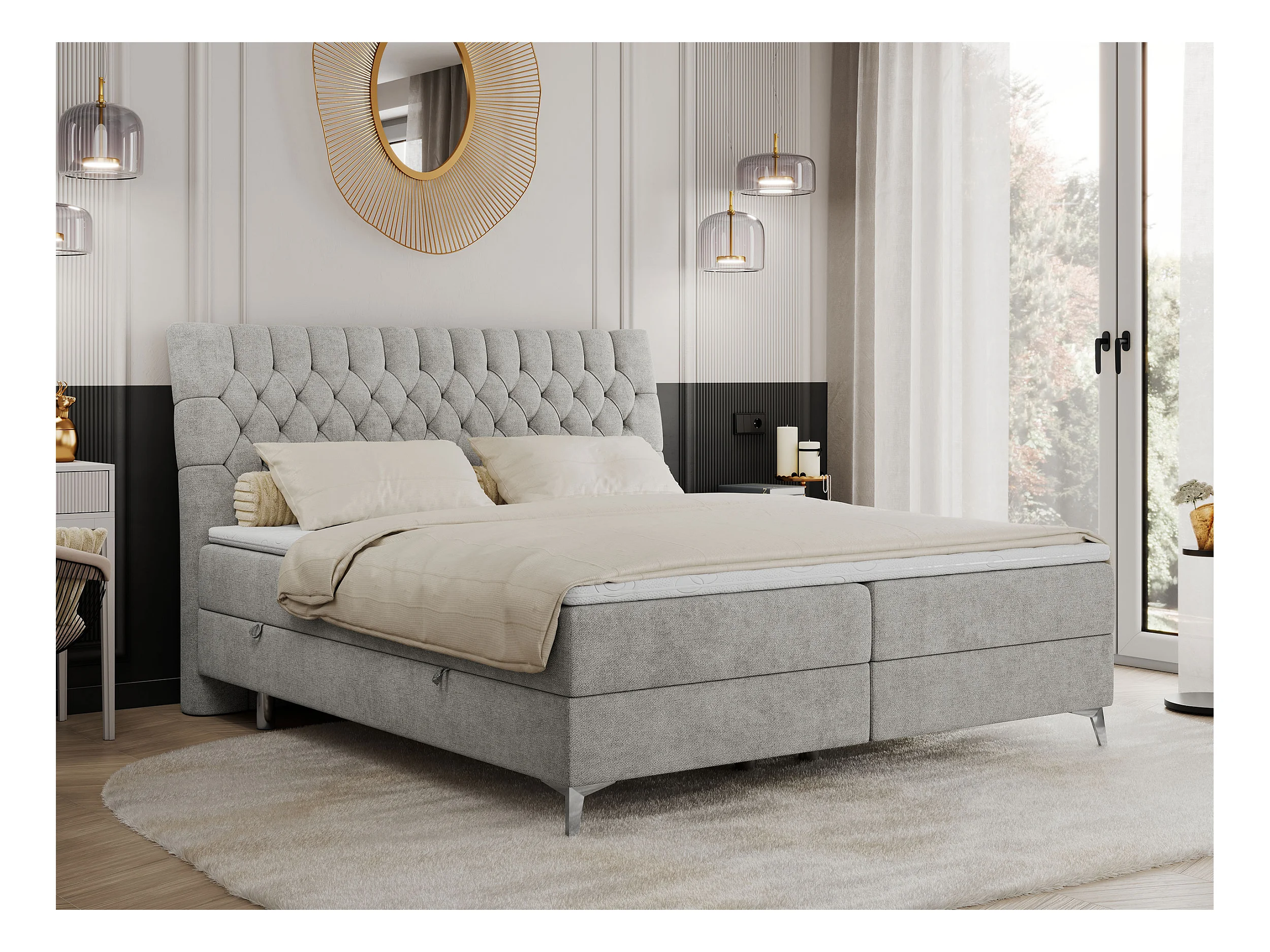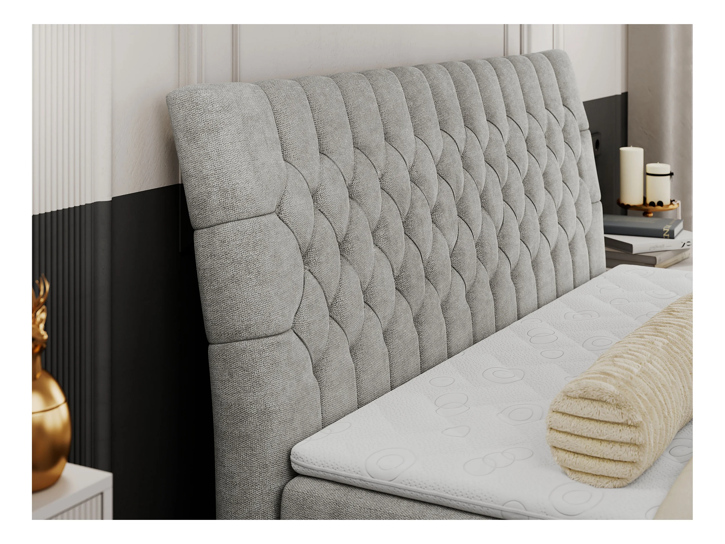 Boxspringbett MILEN - gepolstertes Schlafzimmerbett, zwei Multipocket-Matratze, dekorative hohe Beine - 120x200 cm - H3 - Hellgrau Strukture