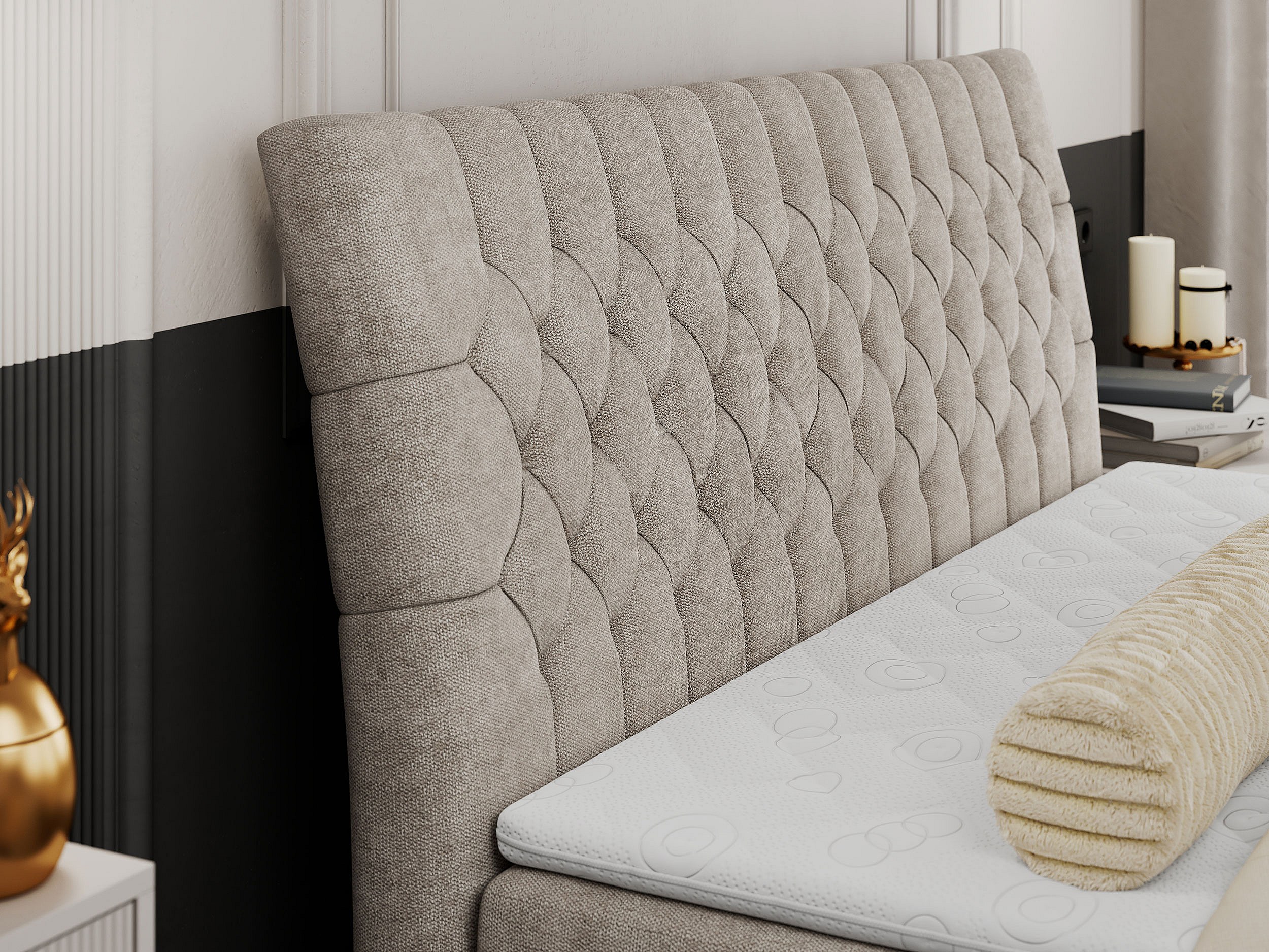 Boxspringbett MILEN - gepolstertes Schlafzimmerbett, zwei Multipocket-Matratze, dekorative hohe Beine - 120x200 cm - H4 - Beige Strukture