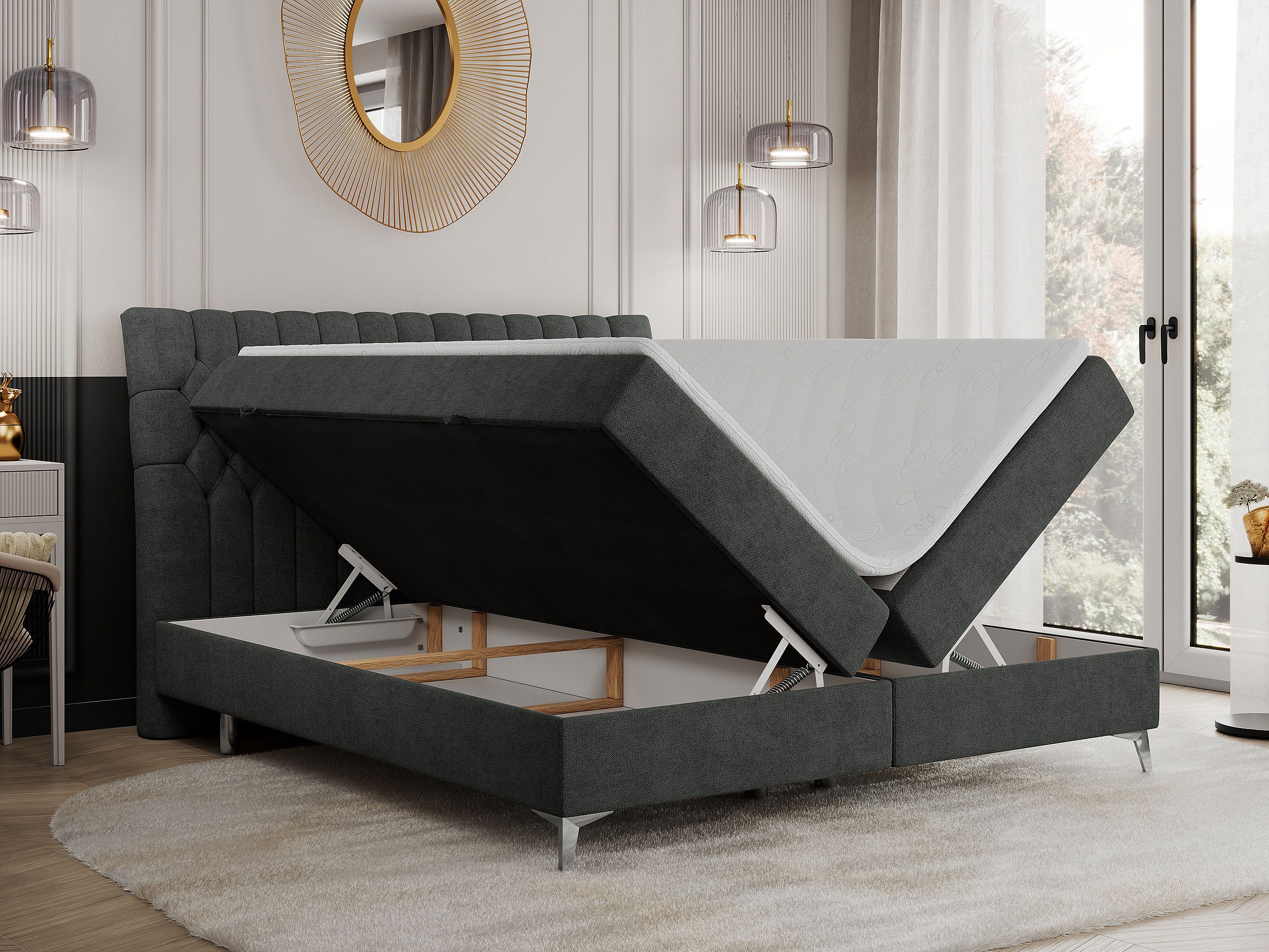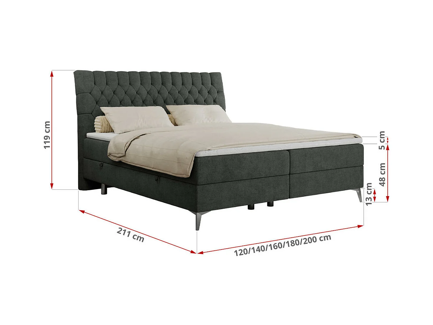 Boxspringbett MILEN - gepolstertes Schlafzimmerbett, zwei Multipocket-Matratze, dekorative hohe Beine - 120x200 cm - H4 - Dunkelgrau Strukture