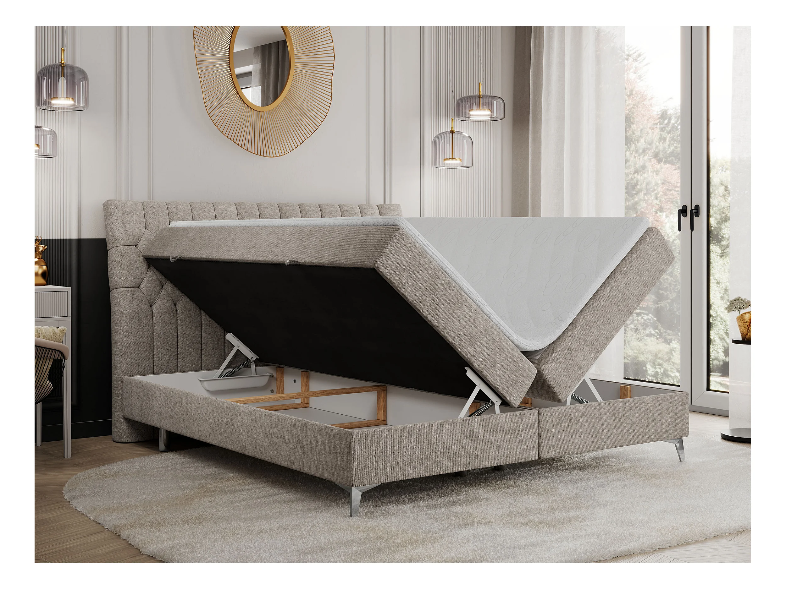 Boxspringbett MILEN - gepolstertes Schlafzimmerbett, zwei Multipocket-Matratze, dekorative hohe Beine - 140x200 cm - H3 - Beige Strukture