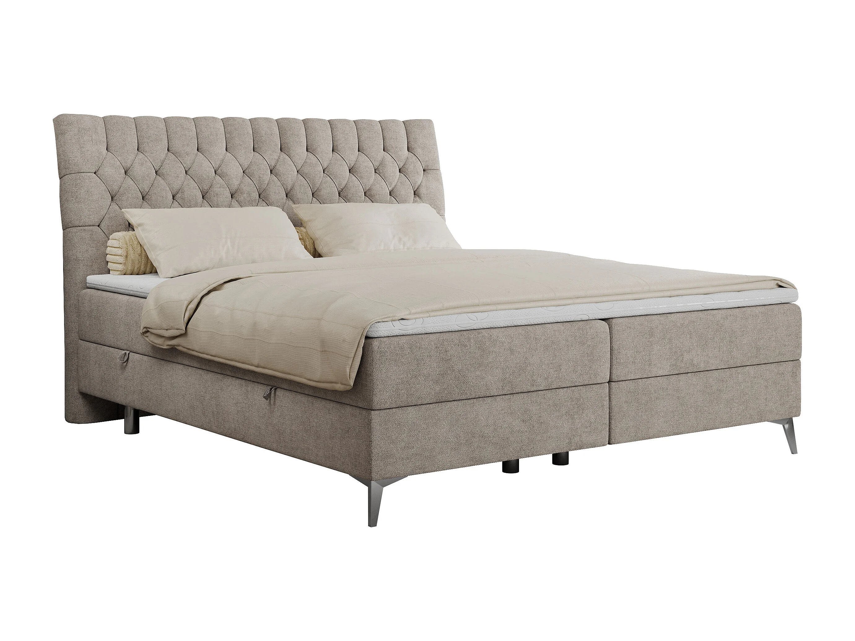 Boxspringbett MILEN - gepolstertes Schlafzimmerbett, zwei Multipocket-Matratze, dekorative hohe Beine - 160x200 cm - H4 - Beige Strukture