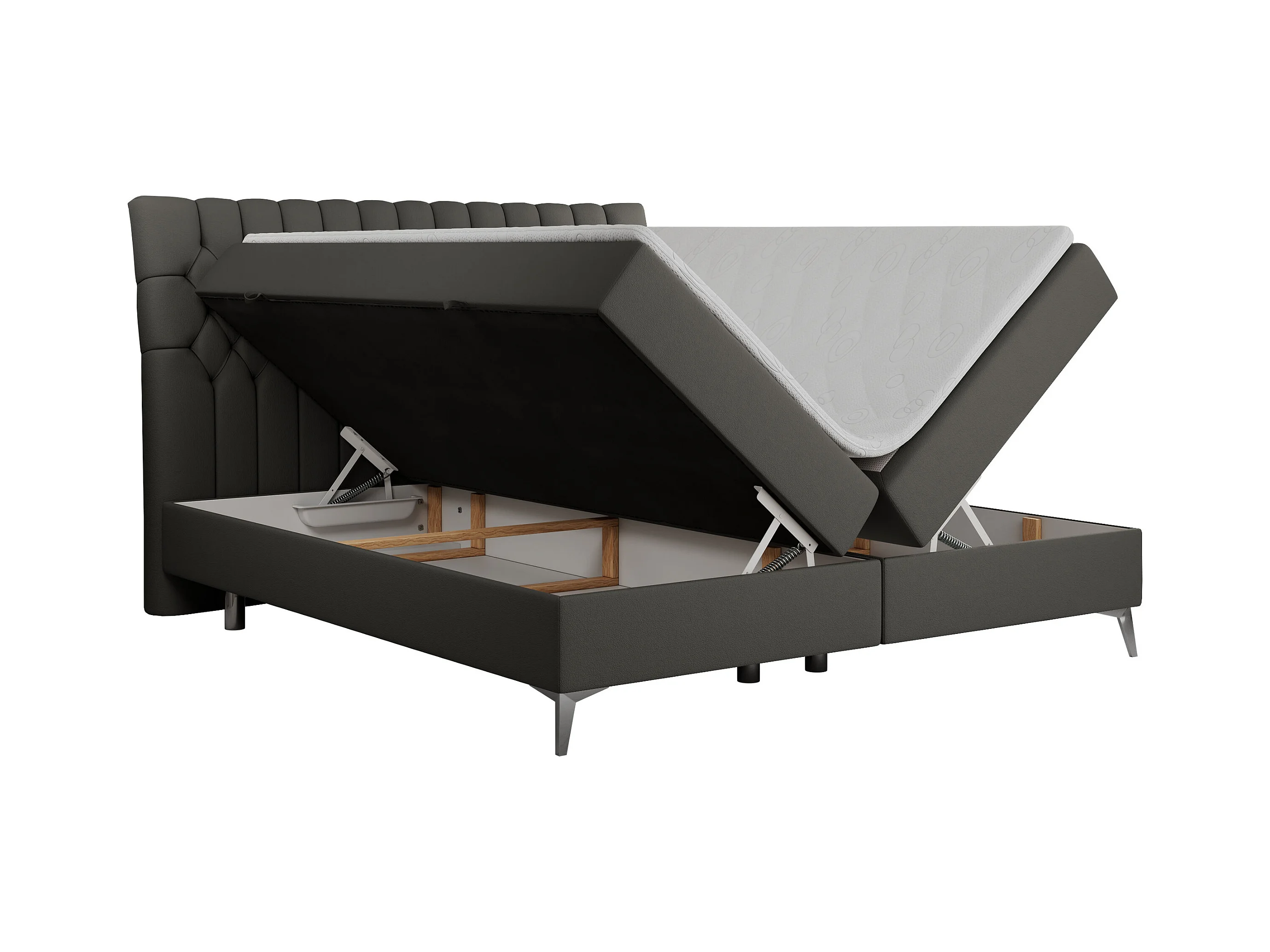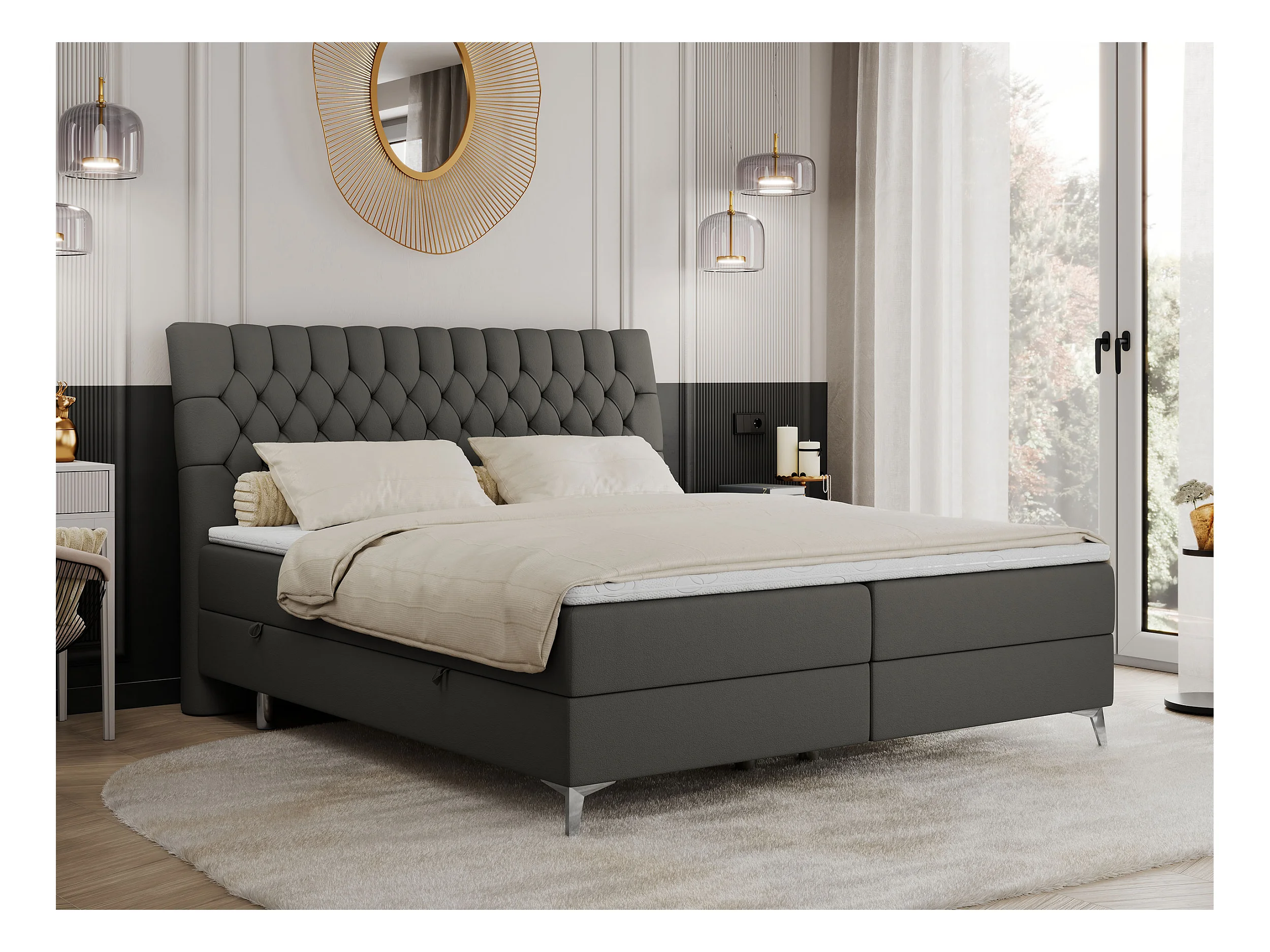 Boxspringbett MILEN - gepolstertes Schlafzimmerbett, zwei Multipocket-Matratze, dekorative hohe Beine - 160x200 cm - H4 - Dunkelgrau Kunstleder