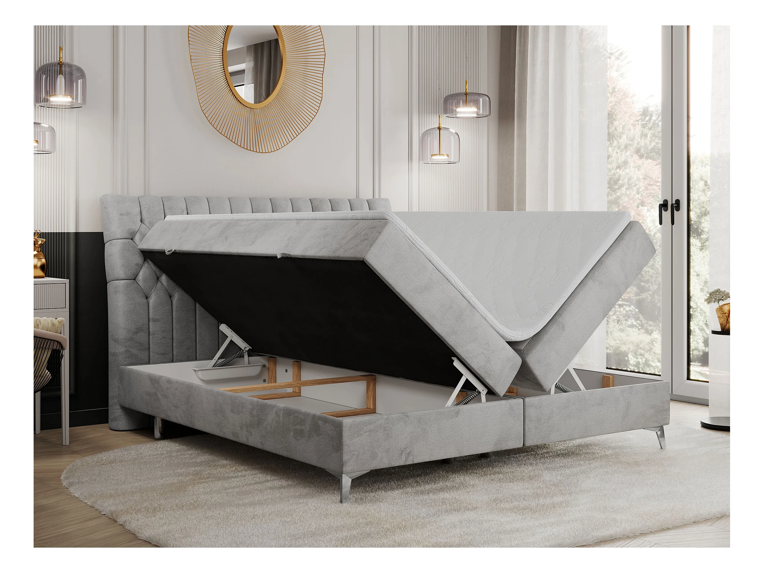 Boxspringbett MILEN - gepolstertes Schlafzimmerbett, zwei Multipocket-Matratze, dekorative hohe Beine - 160x200 cm - H4 - Hellgrau Velvet