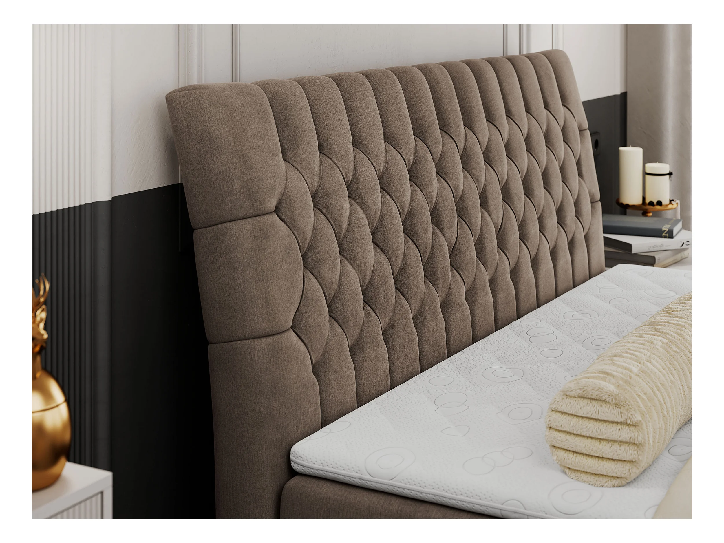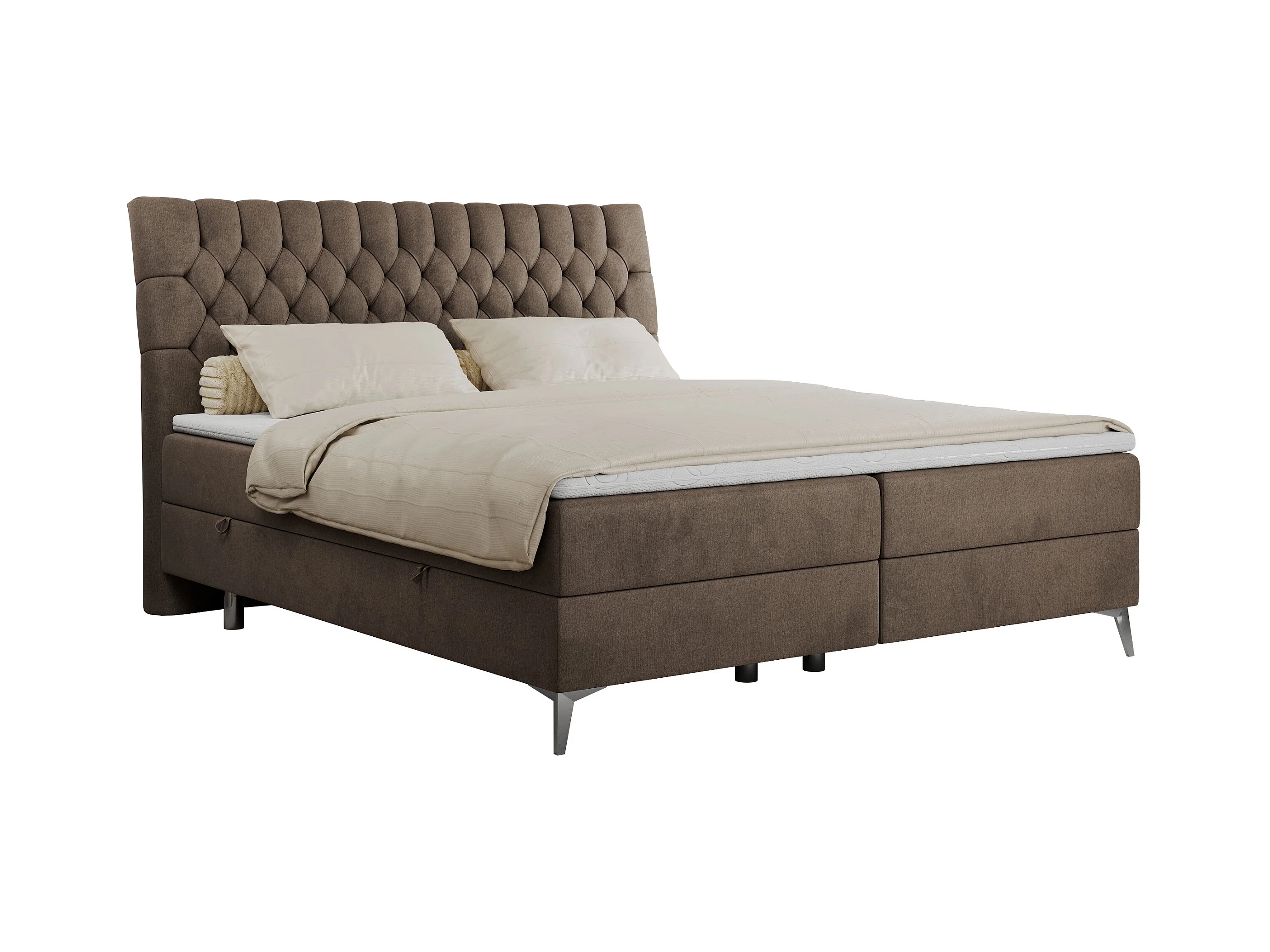 Boxspringbett MILEN - gepolstertes Schlafzimmerbett, zwei Multipocket-Matratze, dekorative hohe Beine - 200x200 cm - H3 - Braun Velvet