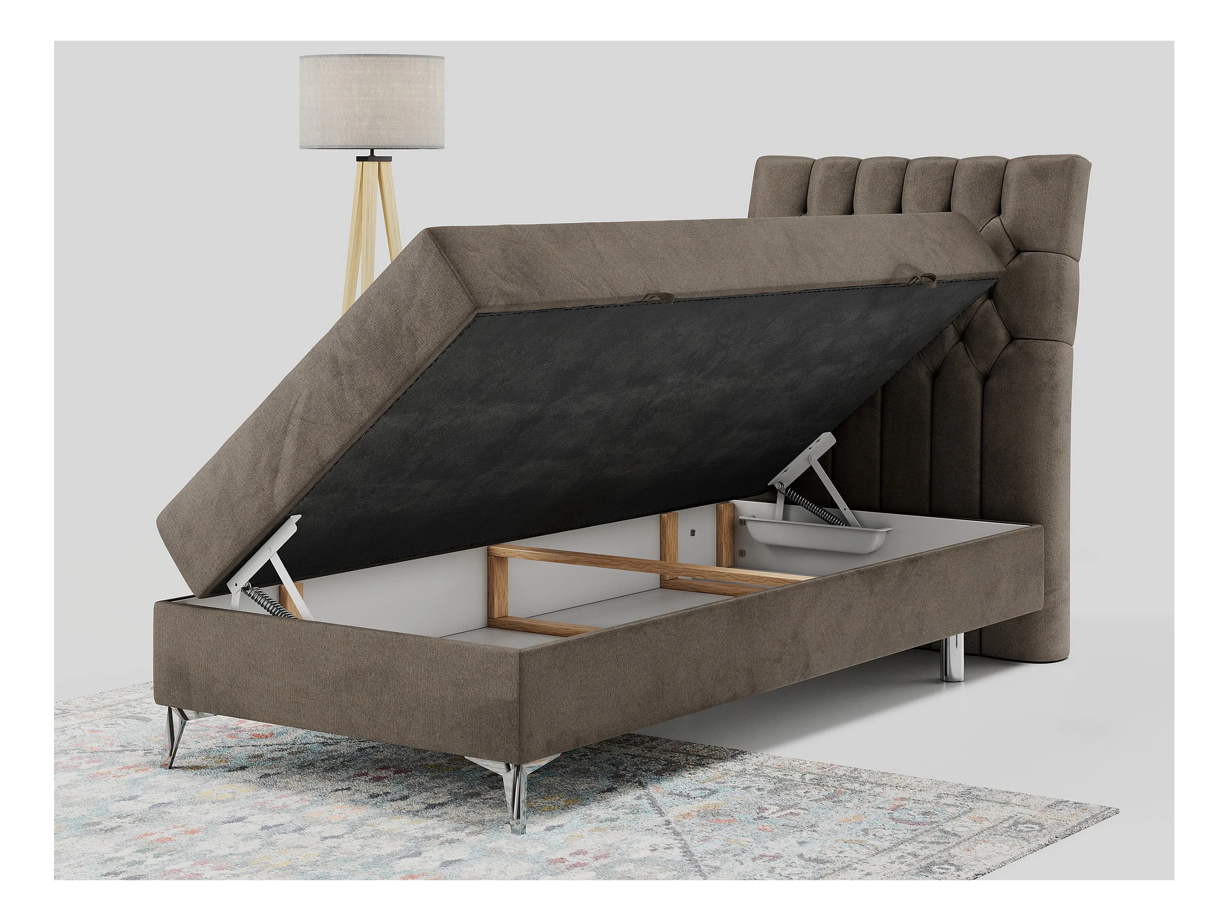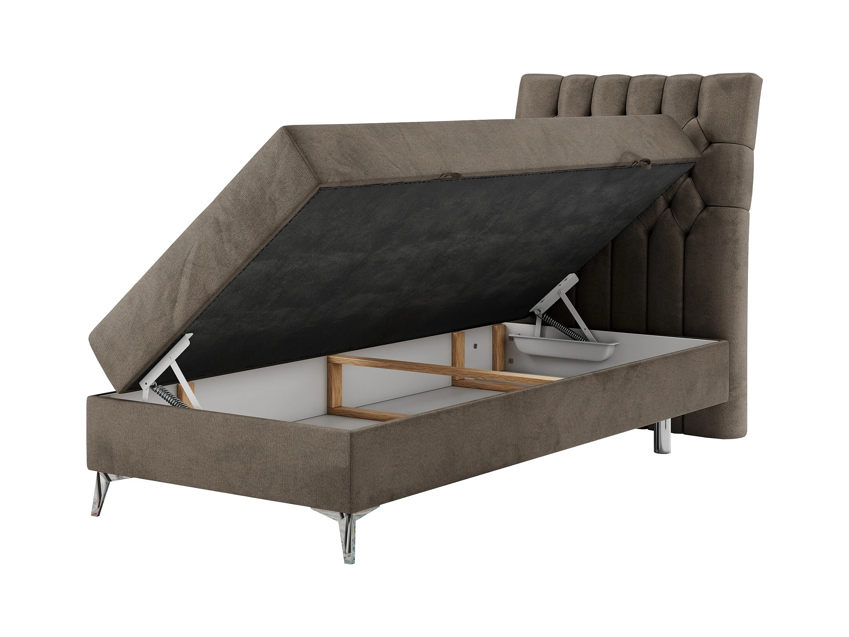 Boxspringbett MILEN - Polsterbett auf Metallbeine, Set mit Multipocket-Matratze, Gesteppte Kopfstütze - 90x200 cm - H3 - Braun Velvet - Rechts Seite