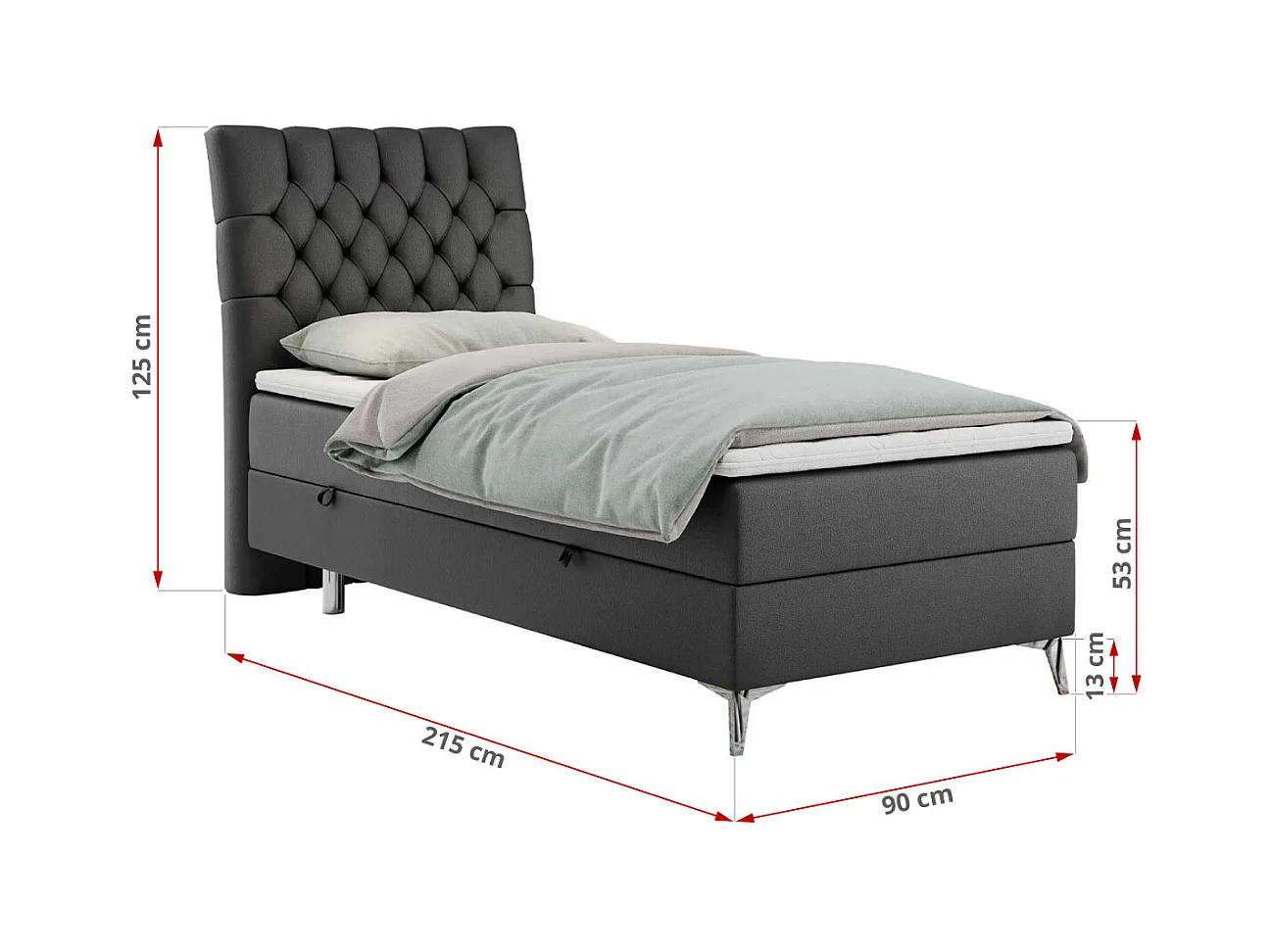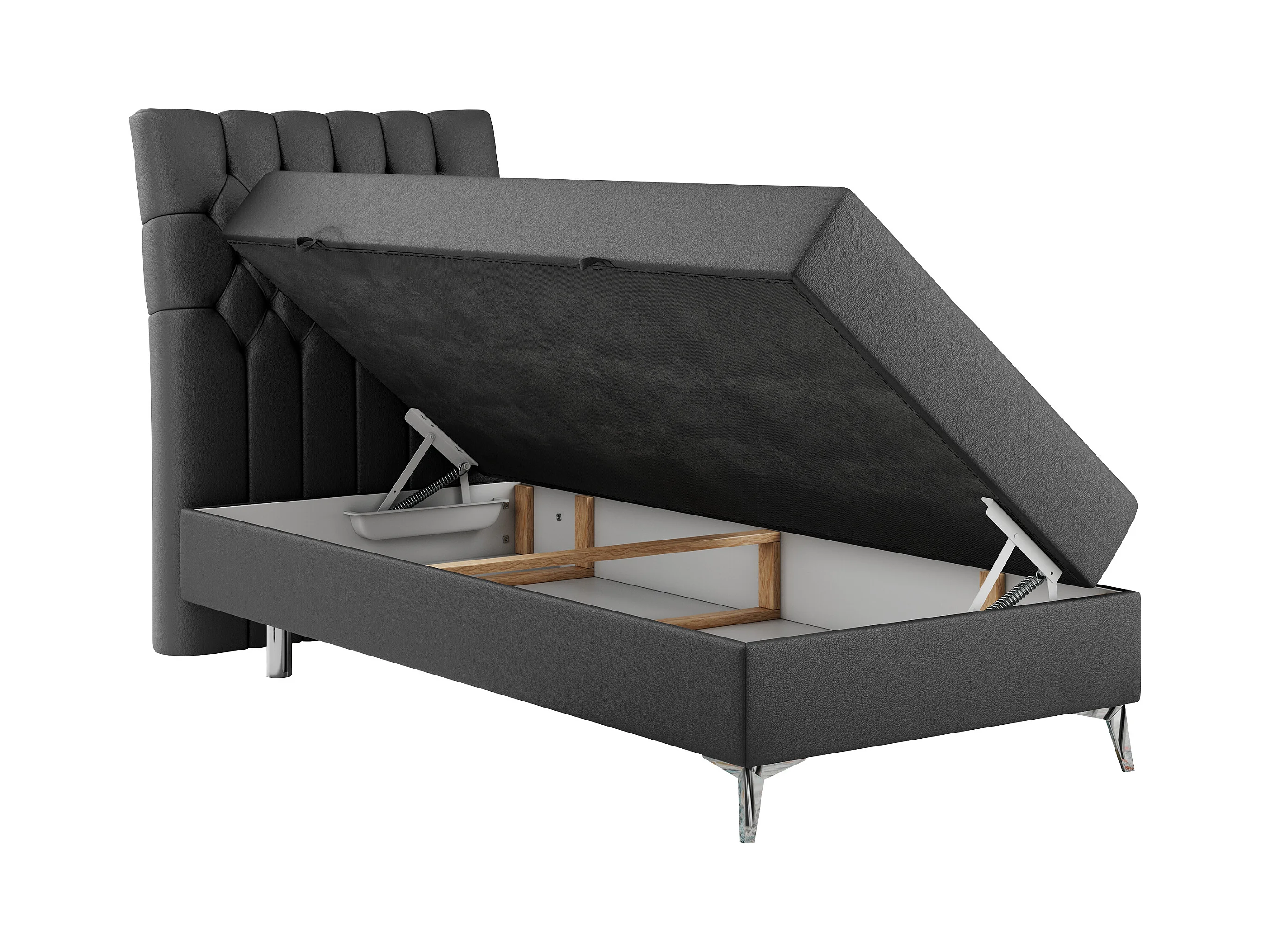 Boxspringbett MILEN - Polsterbett auf Metallbeine, Set mit Multipocket-Matratze, Gesteppte Kopfstütze - 90x200 cm - H3 - Dunkelgrau Kunstleder - Links Seite