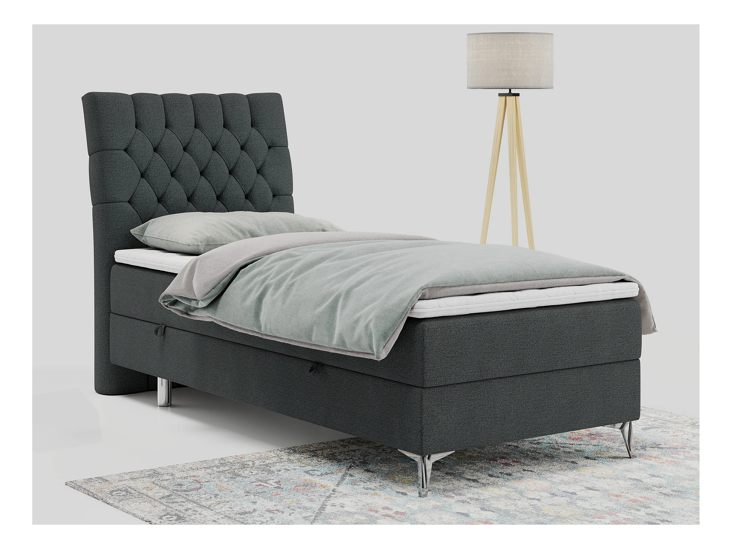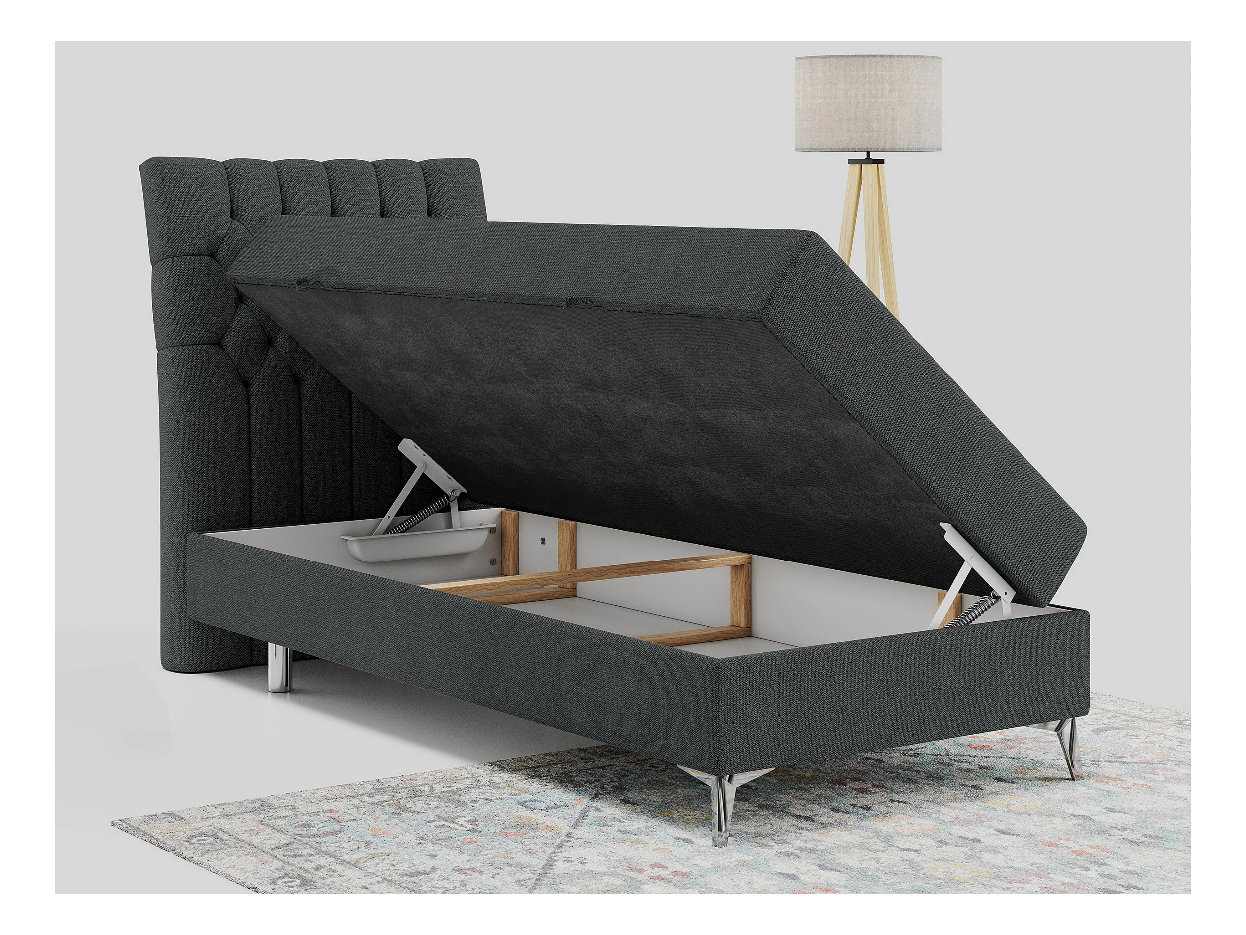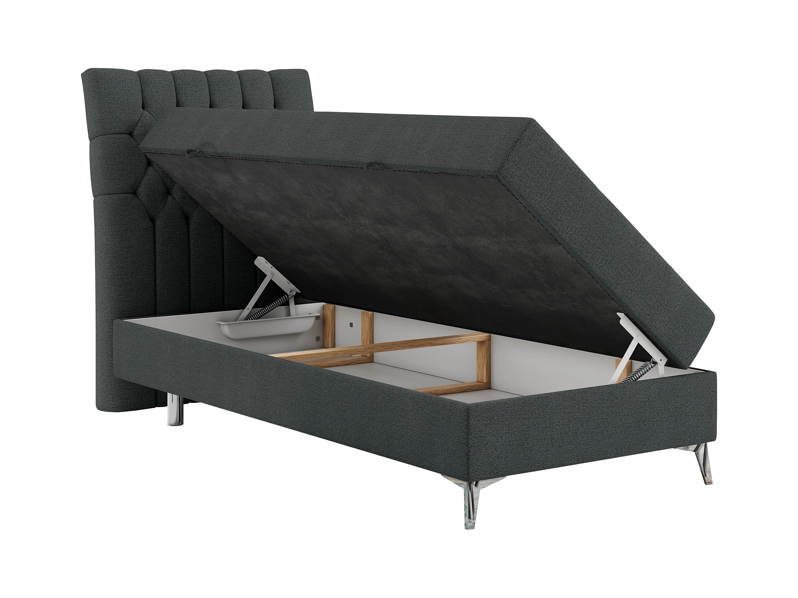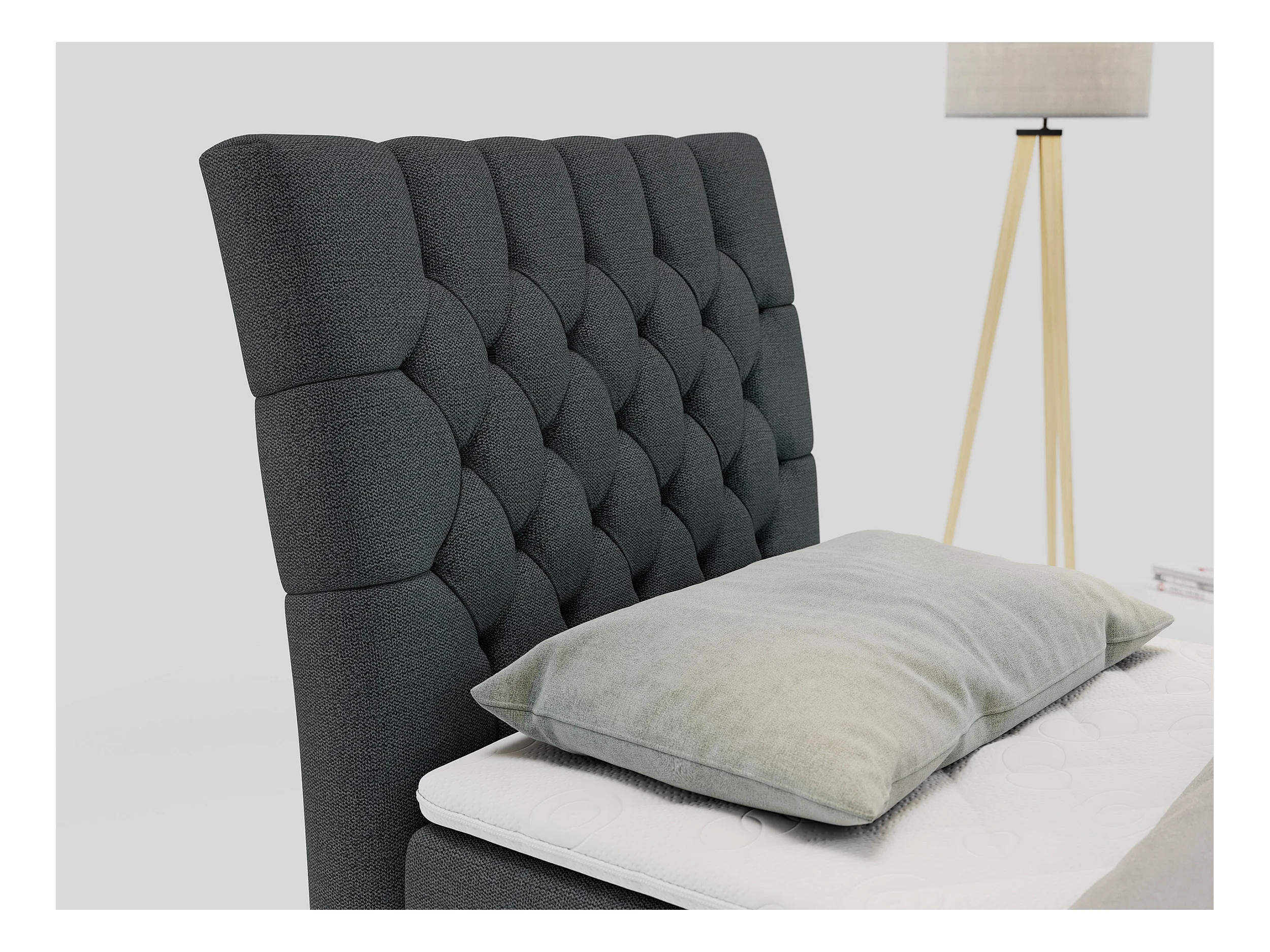 Boxspringbett MILEN - Polsterbett auf Metallbeine, Set mit Multipocket-Matratze, Gesteppte Kopfstütze - 90x200 cm - H3 - Dunkelgrau Strukture - Links Seite