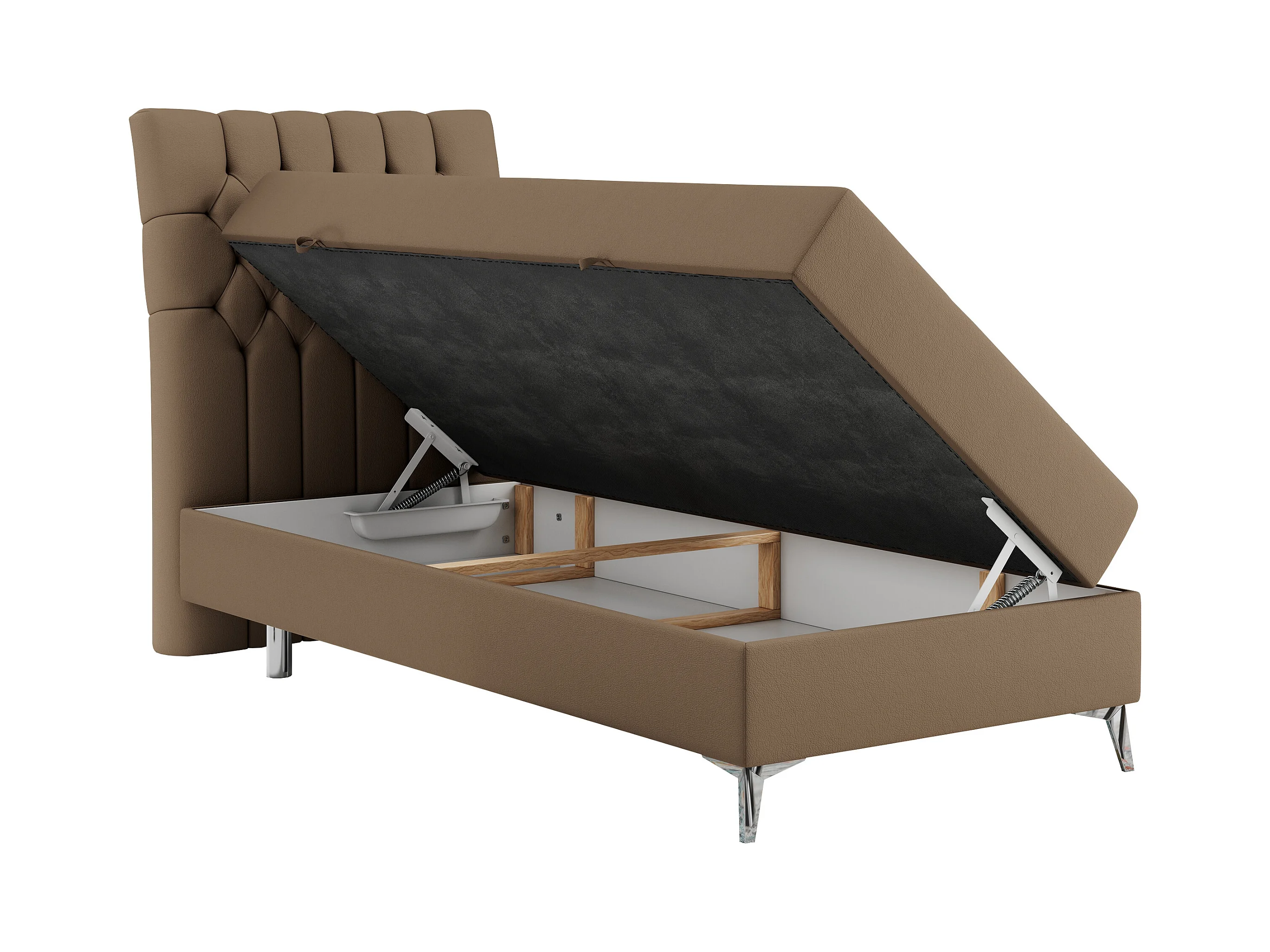 Boxspringbett MILEN - Polsterbett auf Metallbeine, Set mit Multipocket-Matratze, Gesteppte Kopfstütze - 90x200 cm - H4 - Braun Kunstleder - Links Seite