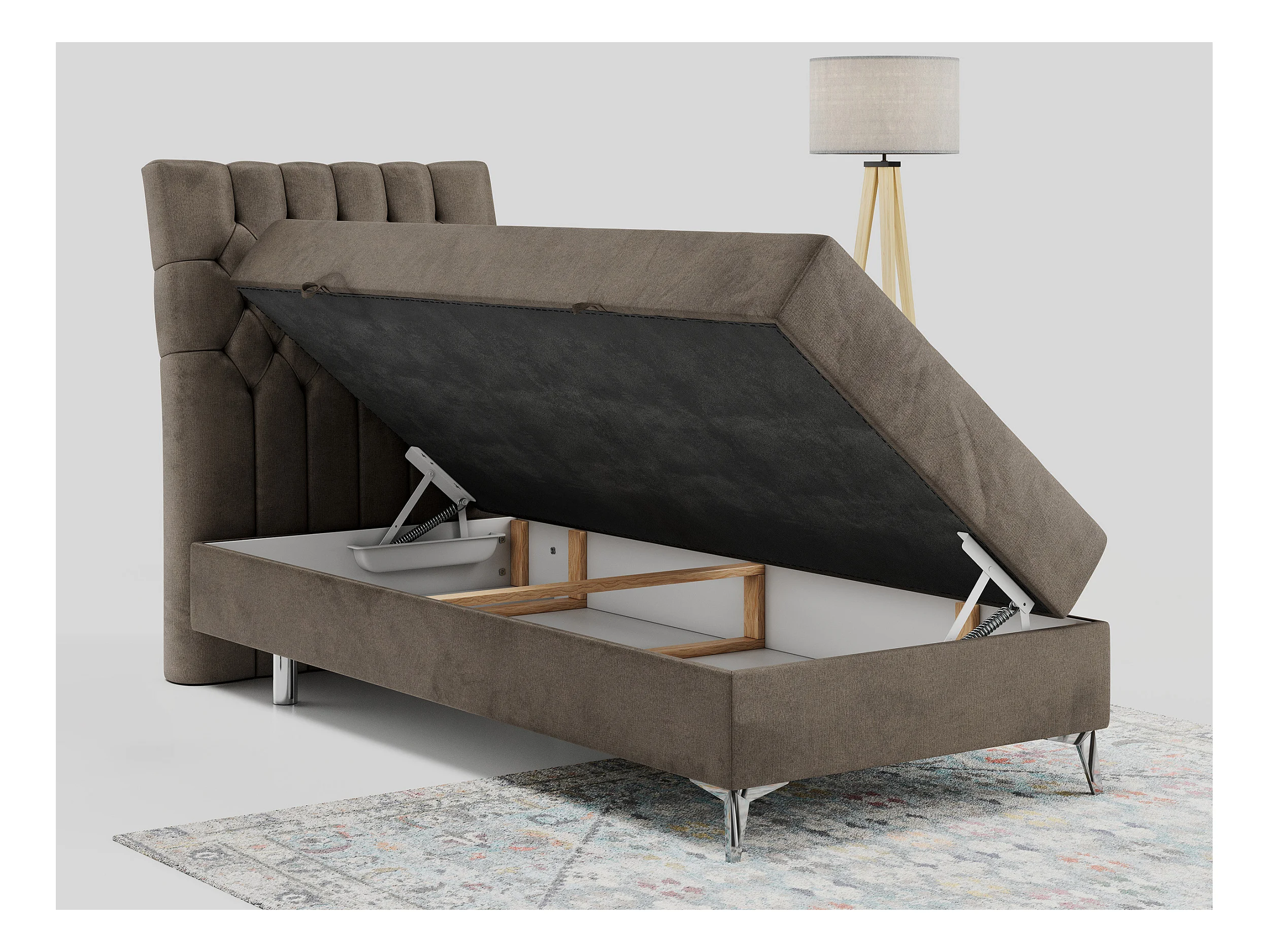 Boxspringbett MILEN - Polsterbett auf Metallbeine, Set mit Multipocket-Matratze, Gesteppte Kopfstütze - 90x200 cm - H4 - Braun Velvet - Links Seite