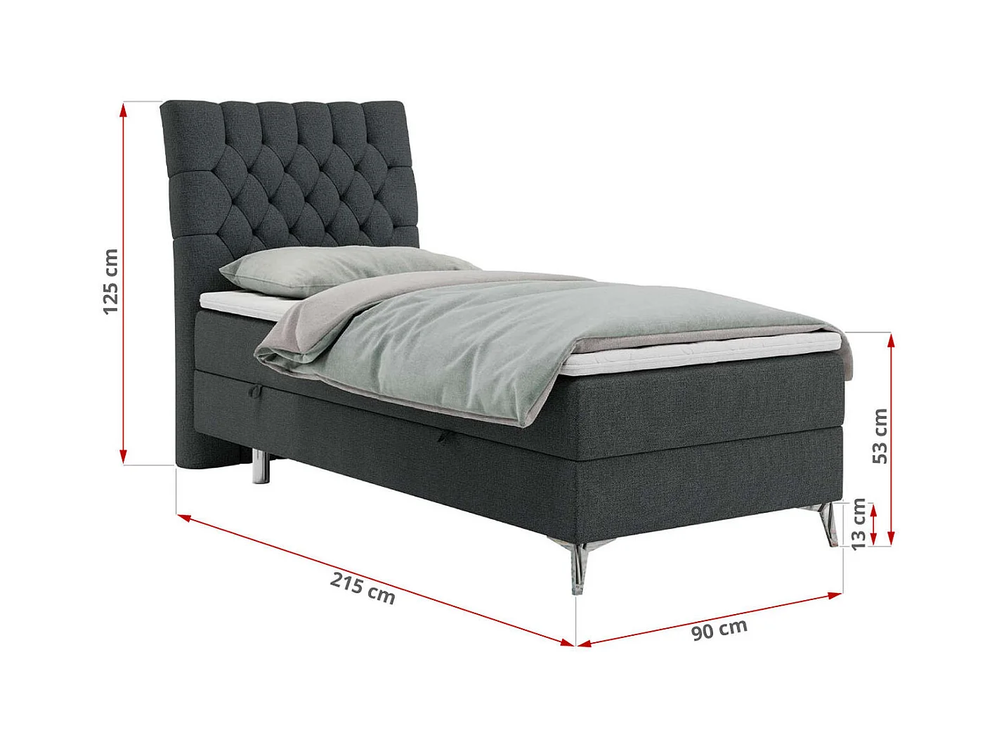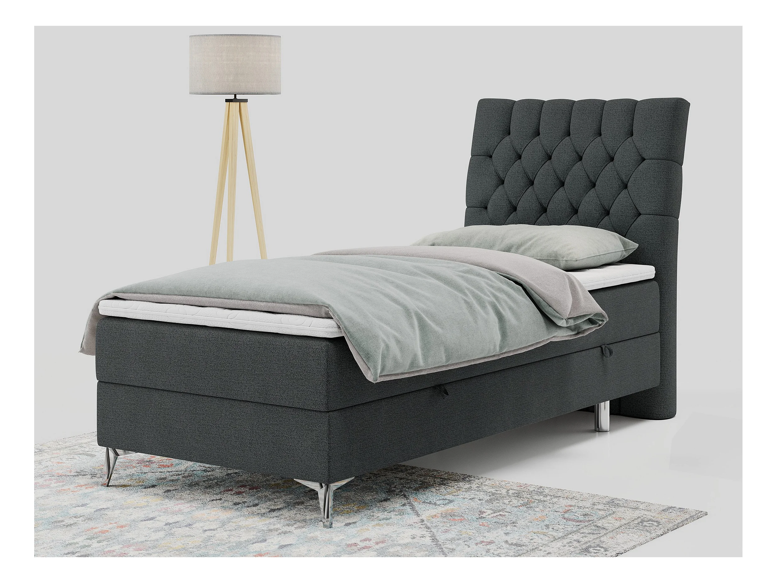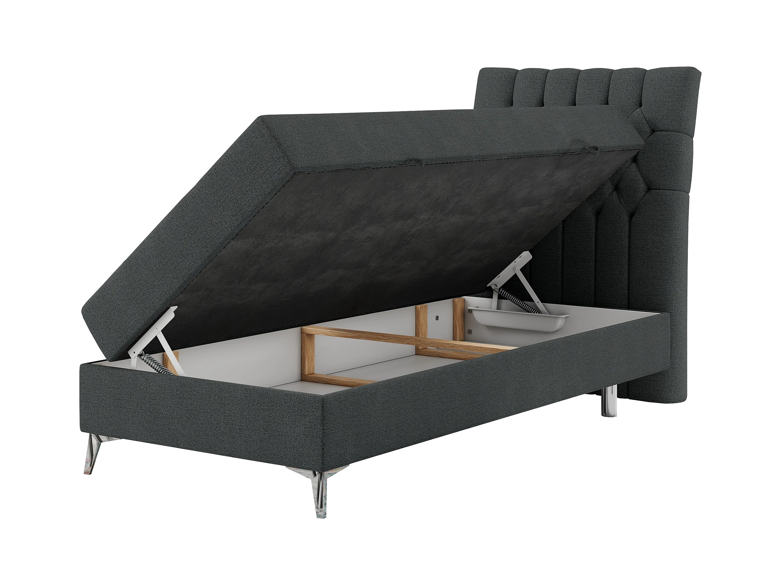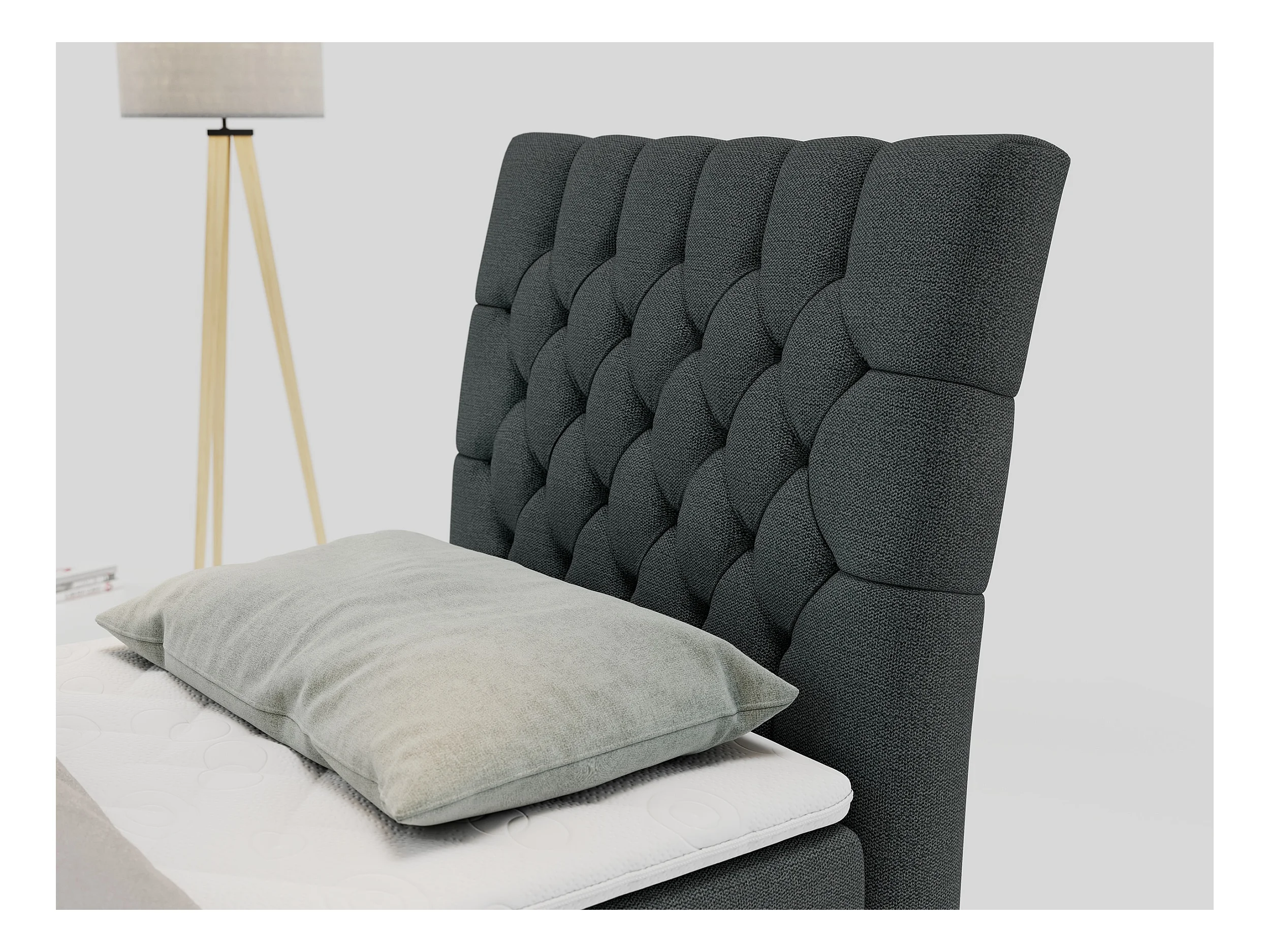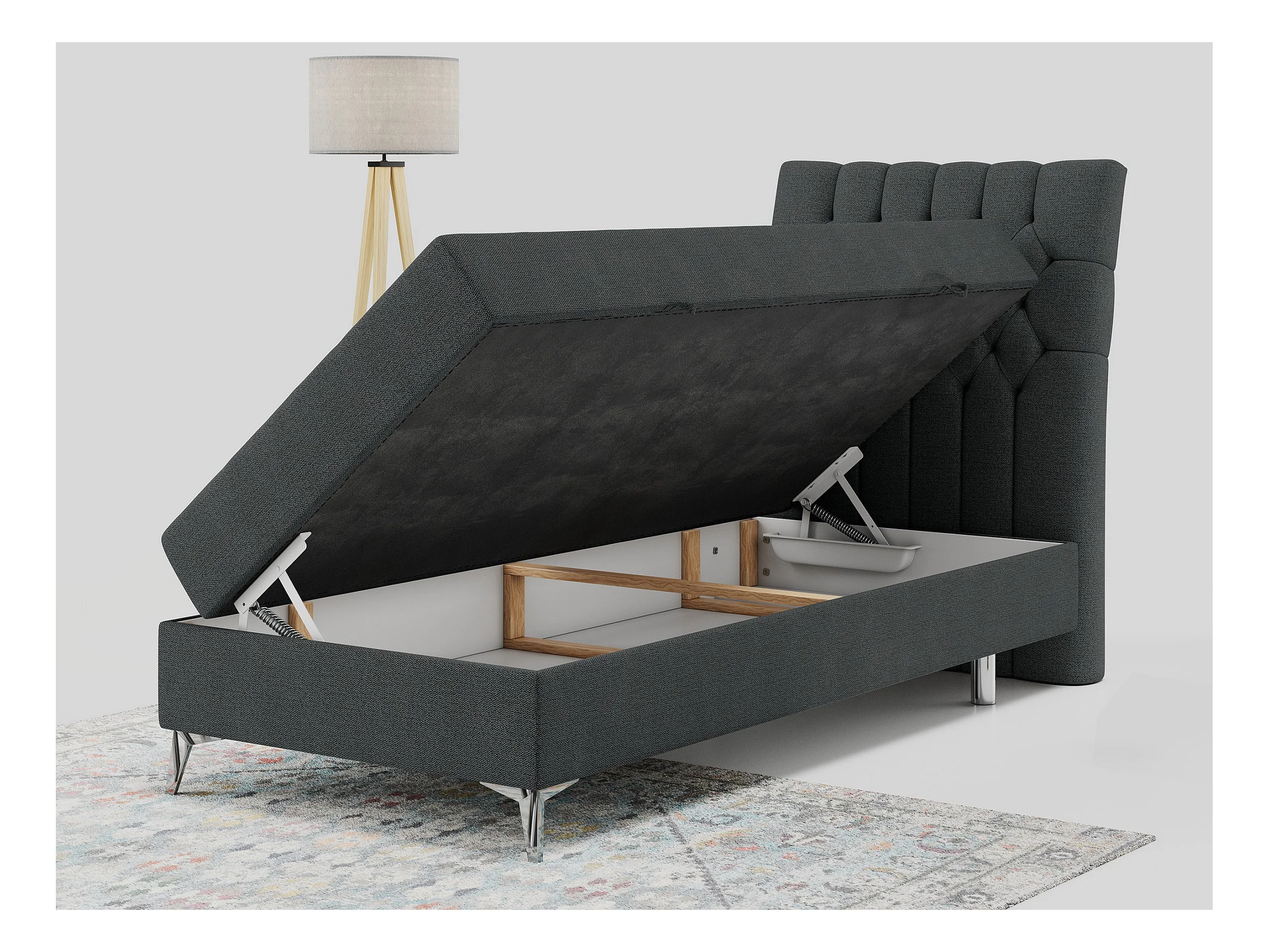 Boxspringbett MILEN - Polsterbett auf Metallbeine, Set mit Multipocket-Matratze, Gesteppte Kopfstütze - 90x200 cm - H4 - Dunkelgrau Strukture - Rechts Seite